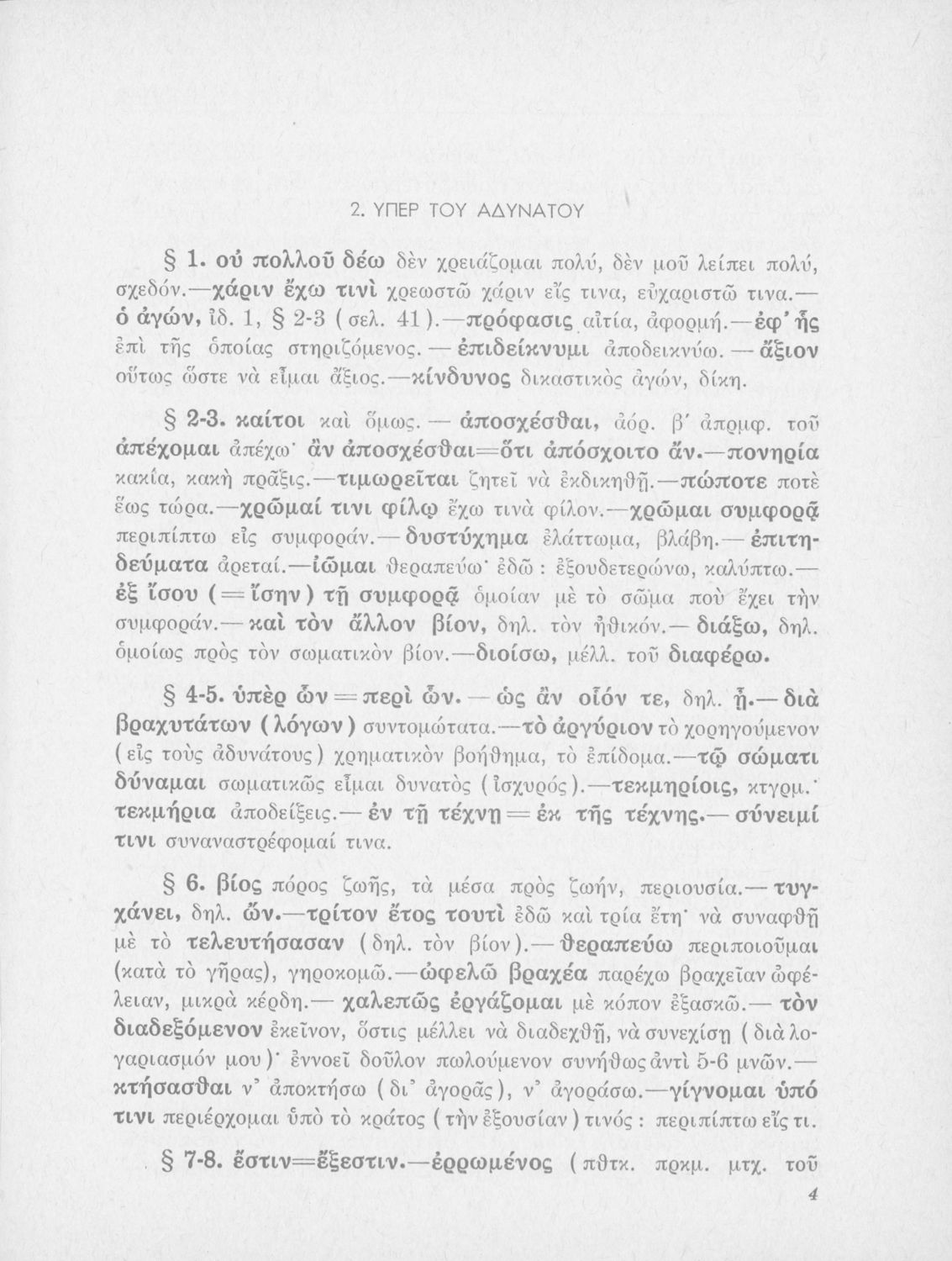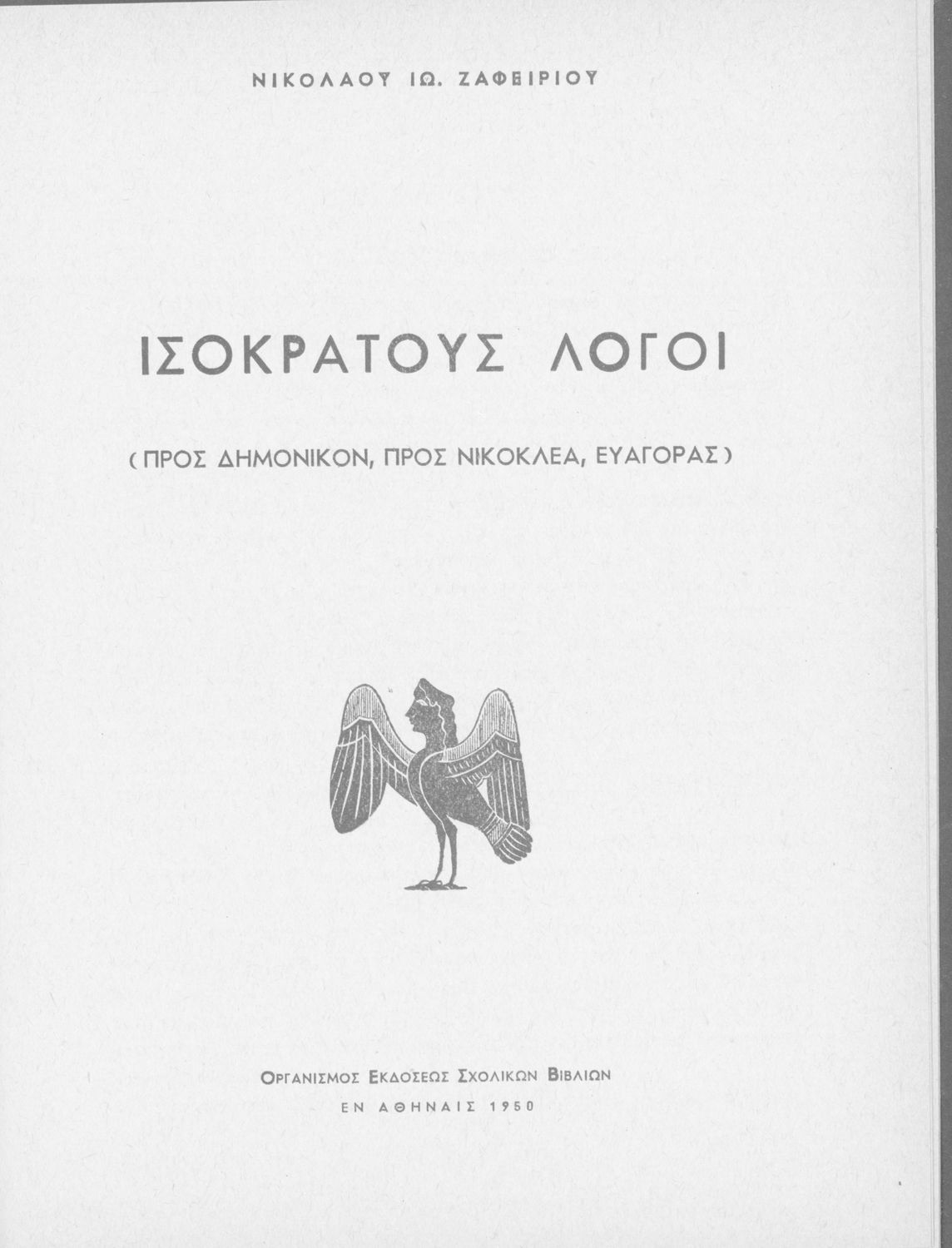 Σχολικό εγχειρίδιο Αρχαίων Ελληνικών που περιλαμβάνει τους Λόγους του Λυσία Περί του σηκού απολογία, Υπέρ του αδυνάτου, Κατά των σιτοπωλών και του Ισοκράτη Προς Δημόνικον, Προς Νικοκλέα και Ευαγόρας, εισαγωγή στους Λόγους και ερμηνευτικά σχόλια.