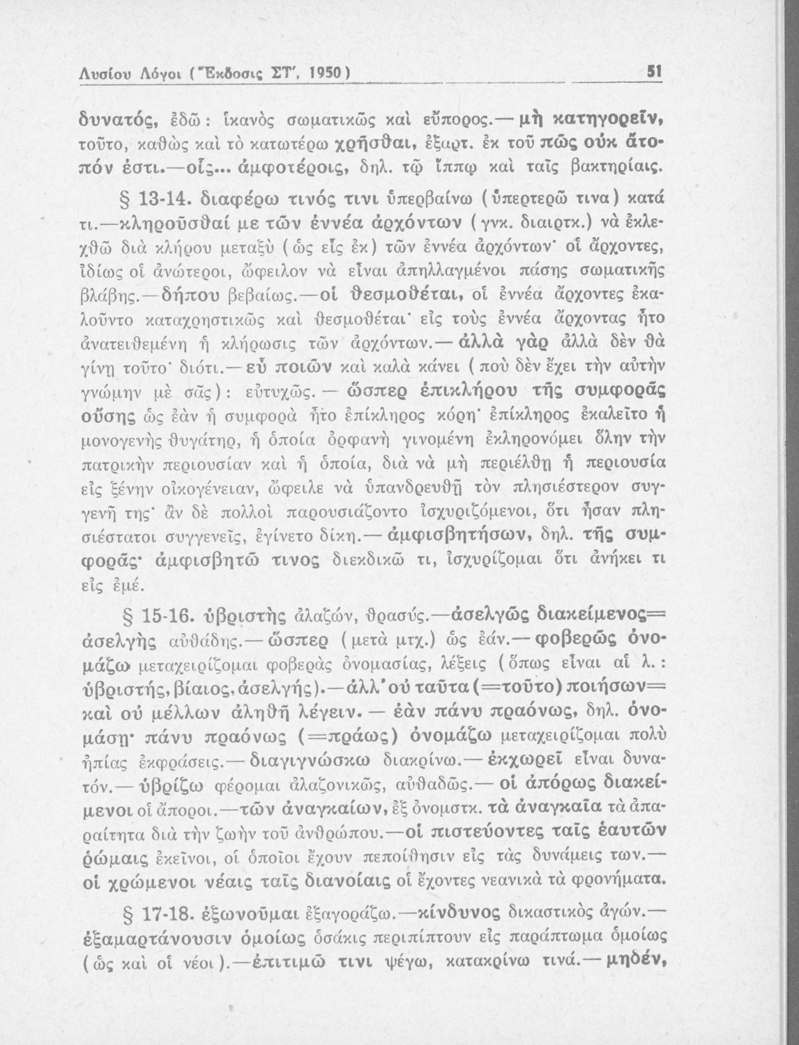 Λυσίας, Ισοκράτης, Κυριάκος Κοσμάς, Νικόλαος Ζαφειρίου (σχόλια)
