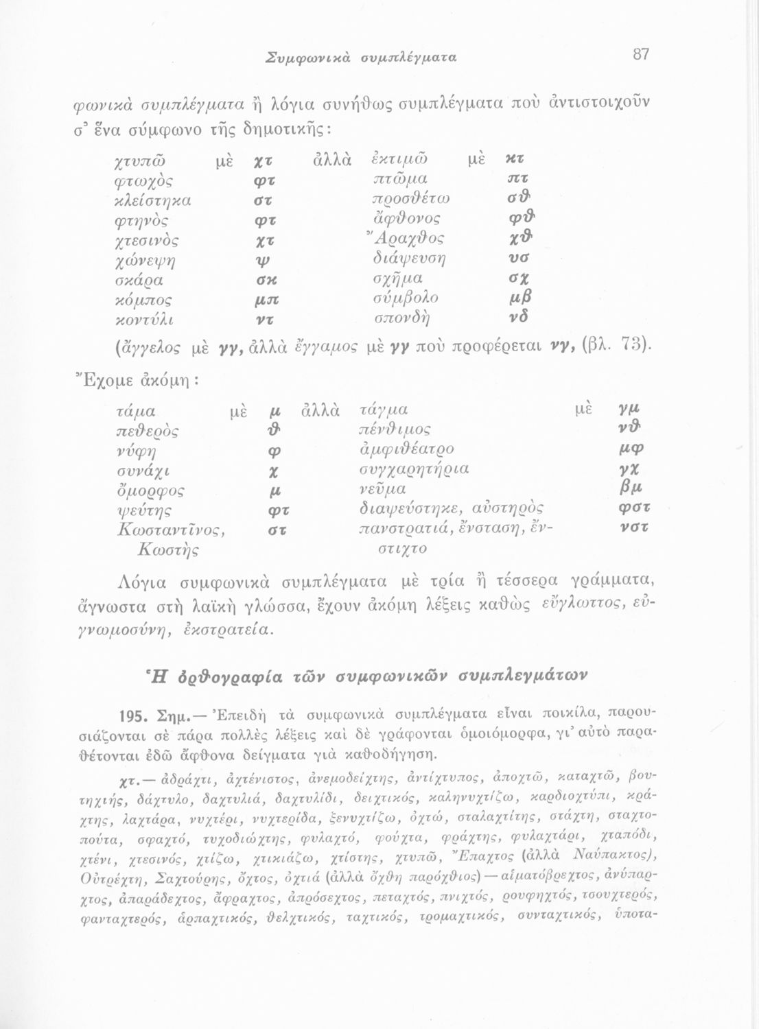 Μαθητικό βοήθημα Δημοτικού που περιλαμβάνει τη γραμματική και το συντακτικό της καθαρεύουσας και πίνακες παραδειγμάτων.