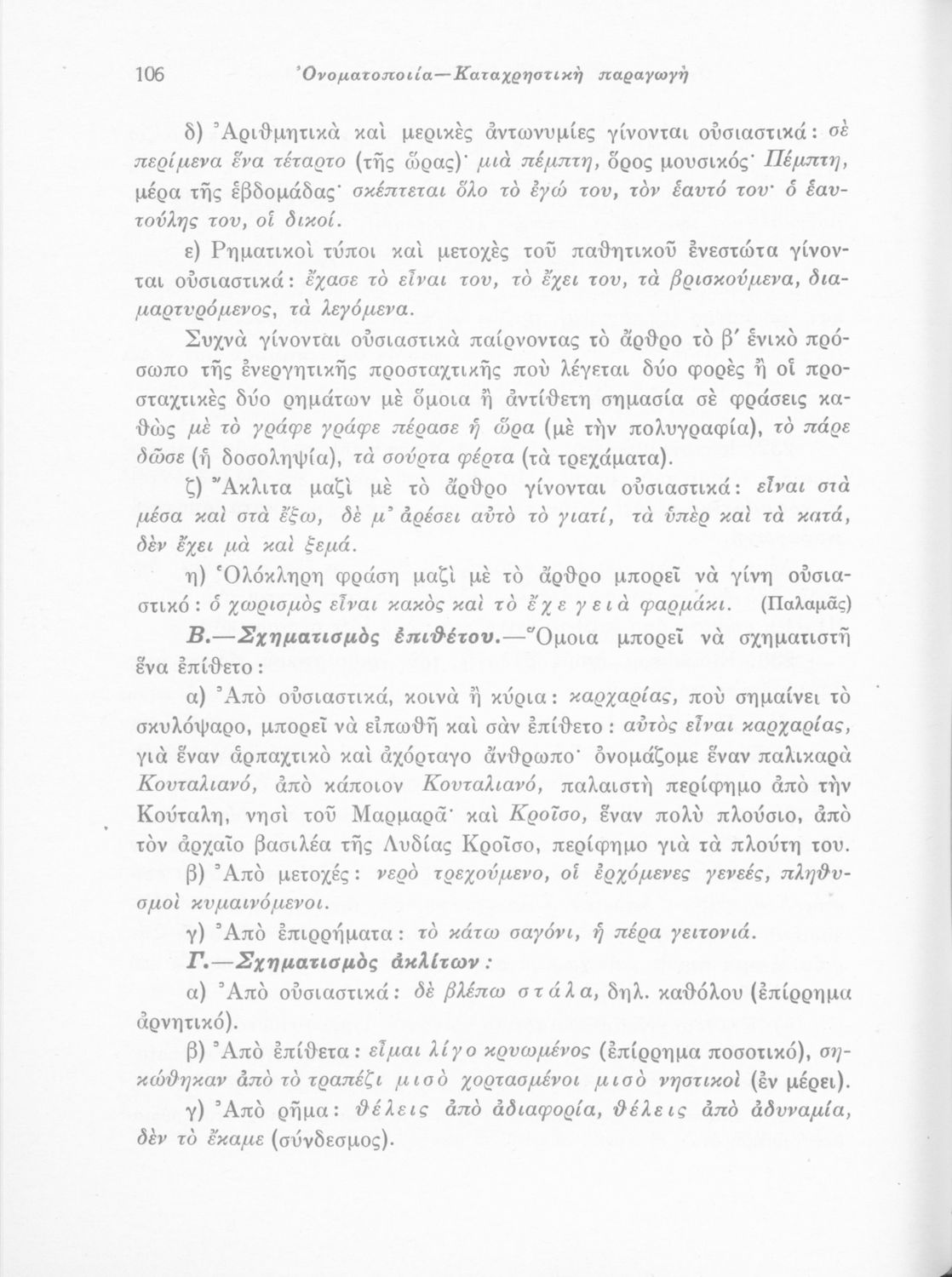 Σχολικό εγχειρίδιο για την Ε΄ και ΣΤ΄ τάξη Δημοτικού με γραμματικούς κανόνες και παραδείγματα για τα κλιτά και άκλιτα μέρη του λόγου.