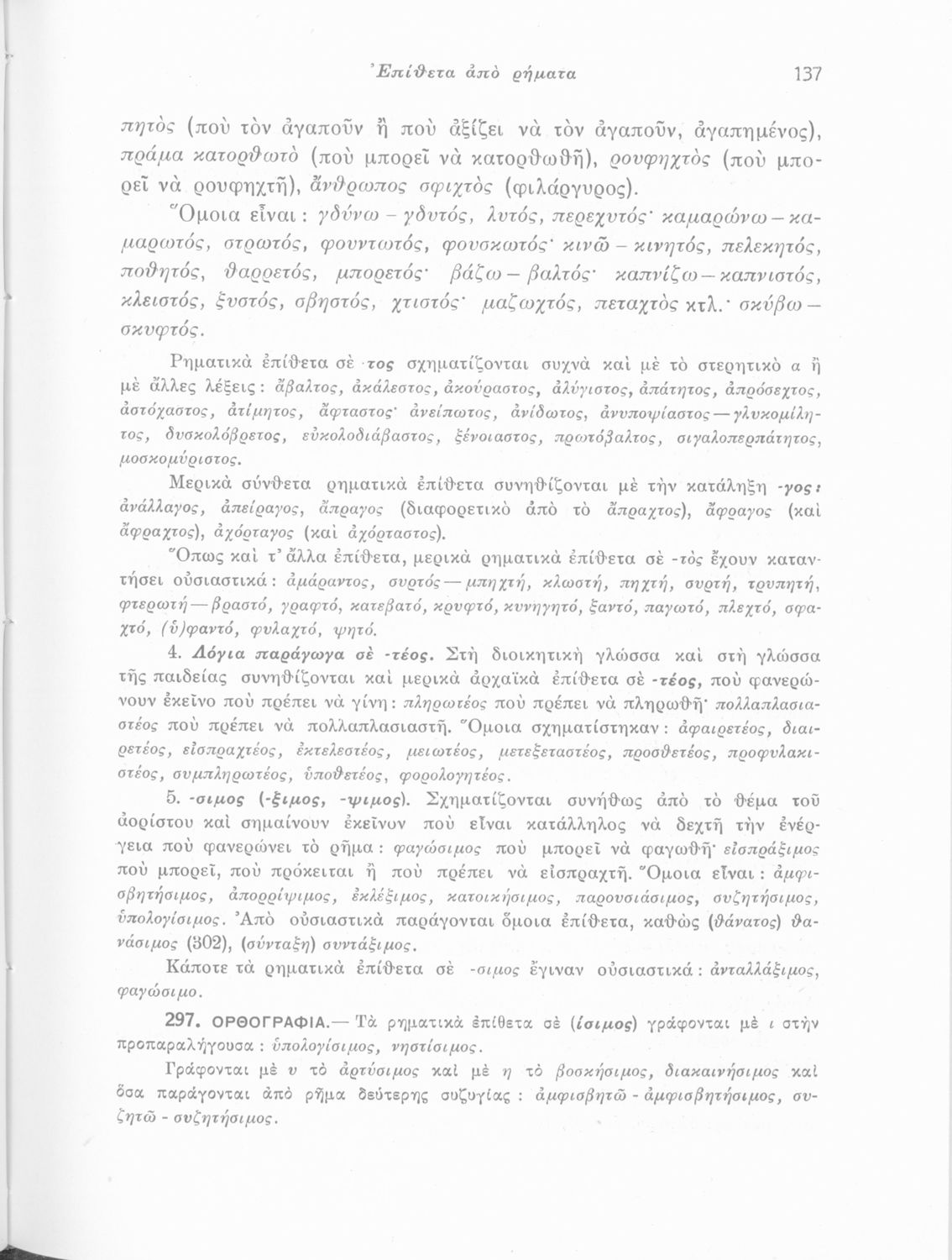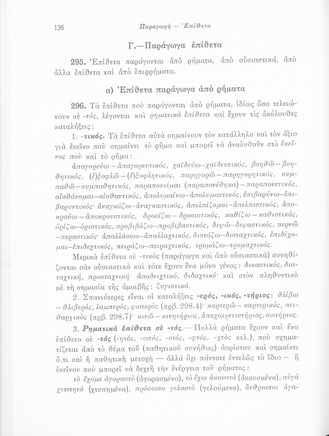 Σχολικό εγχειρίδιο για την Ε΄ και ΣΤ΄ τάξη Δημοτικού με γραμματικούς κανόνες και παραδείγματα για τα κλιτά και άκλιτα μέρη του λόγου.