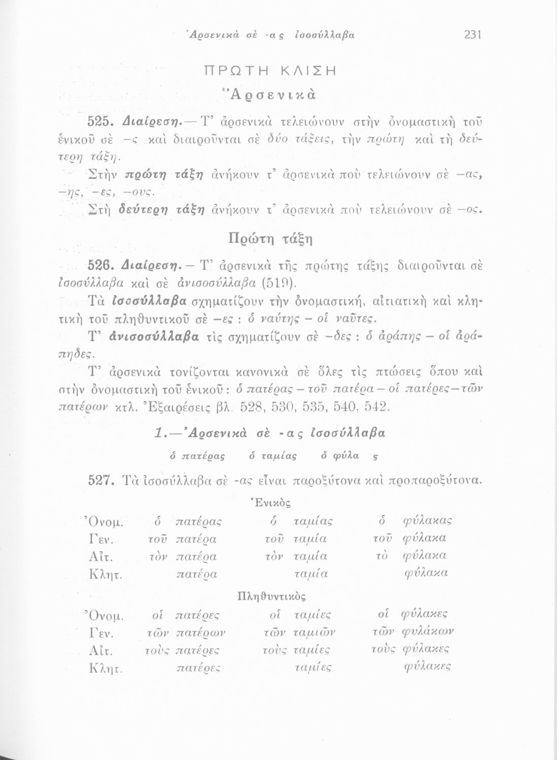 Σχολικό εγχειρίδιο Συντακτικού που γράφηκε από επιτροπή Καθηγητών που ορίστηκε από το Υπουργείο των Θρησκευμάτων και της Εθνικής Παιδείας. Περιλαμβάνει κανόνες και παραδείγματα του συντακτικού της Δημοτικής.