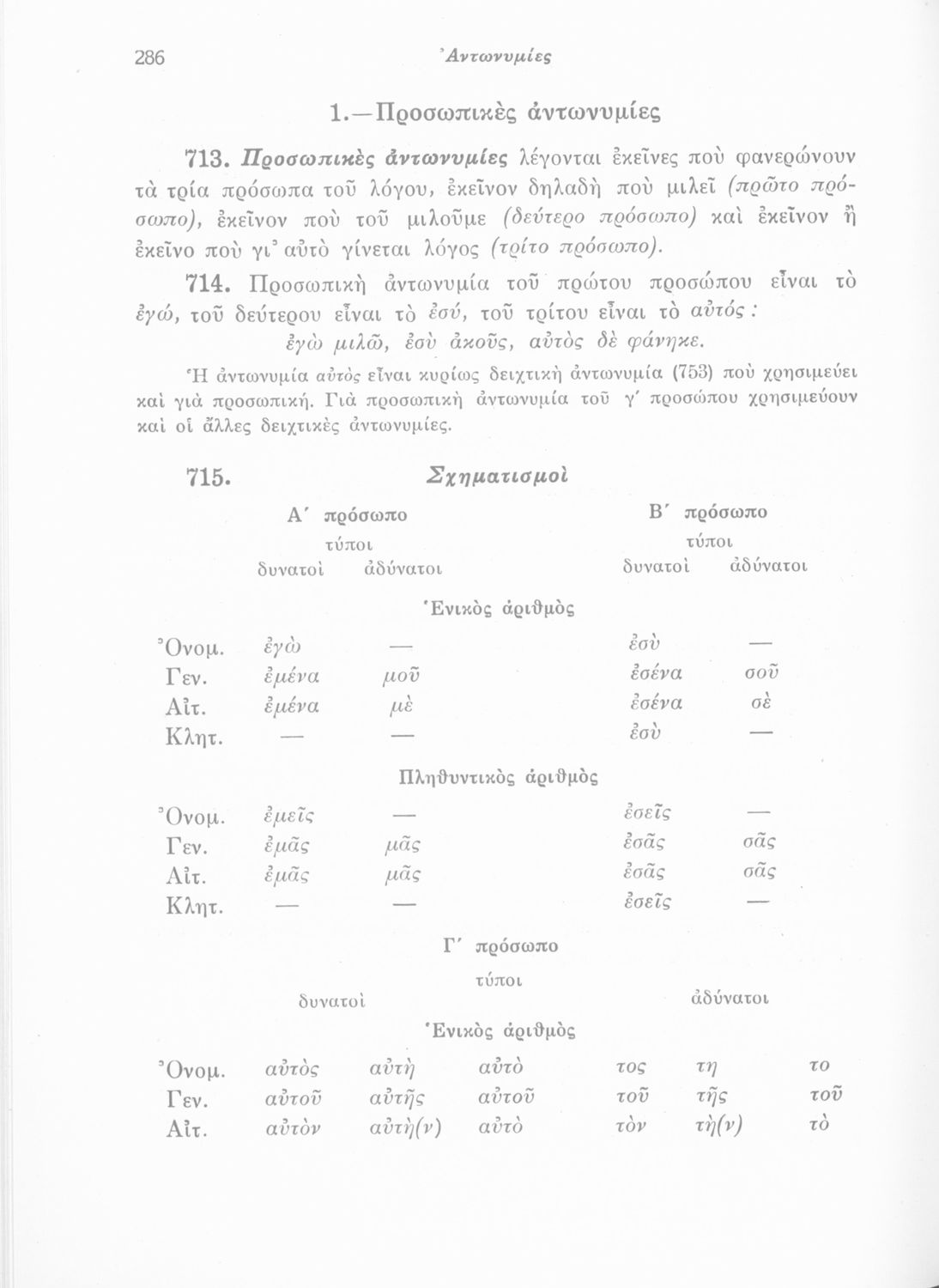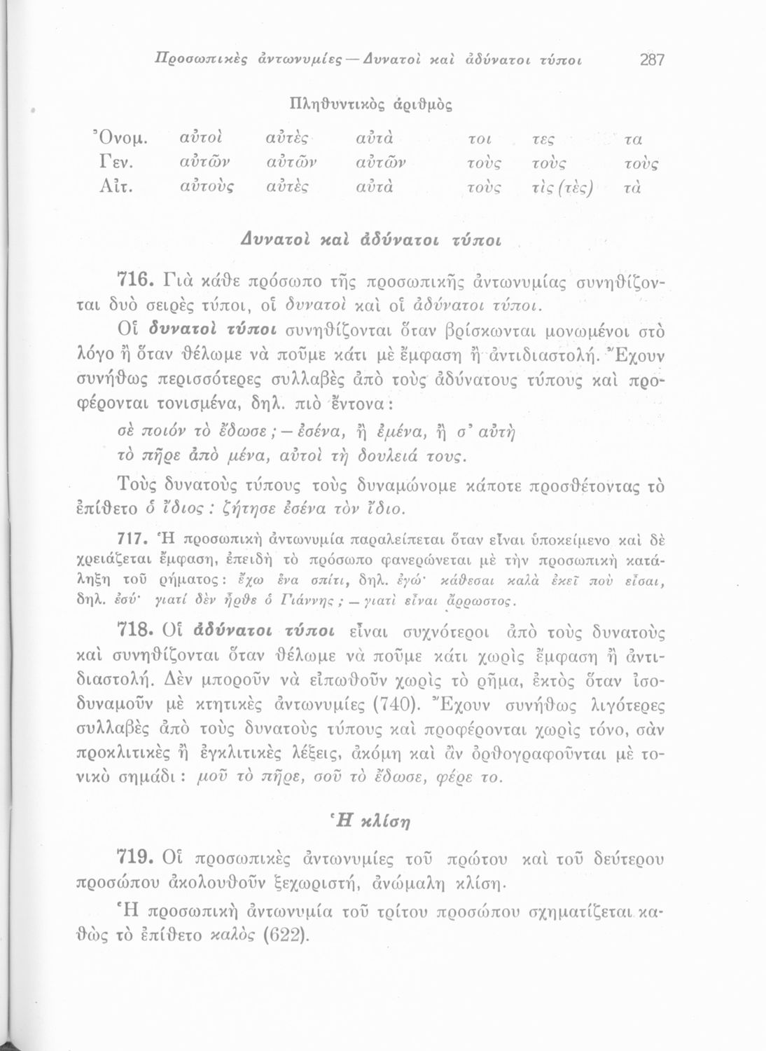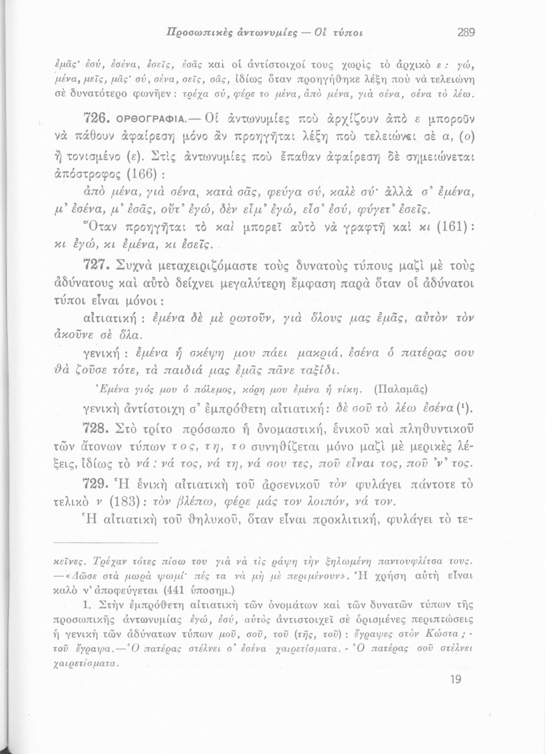 Σχολικό εγχειρίδιο για την Ε΄ και ΣΤ΄ τάξη Δημοτικού με γραμματικούς κανόνες και παραδείγματα για τα κλιτά και άκλιτα μέρη του λόγου.