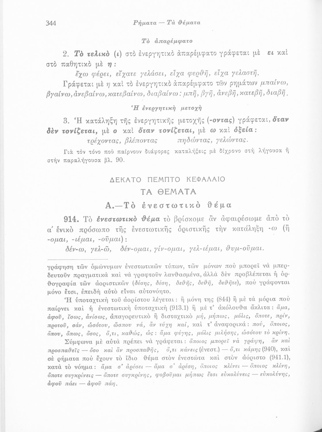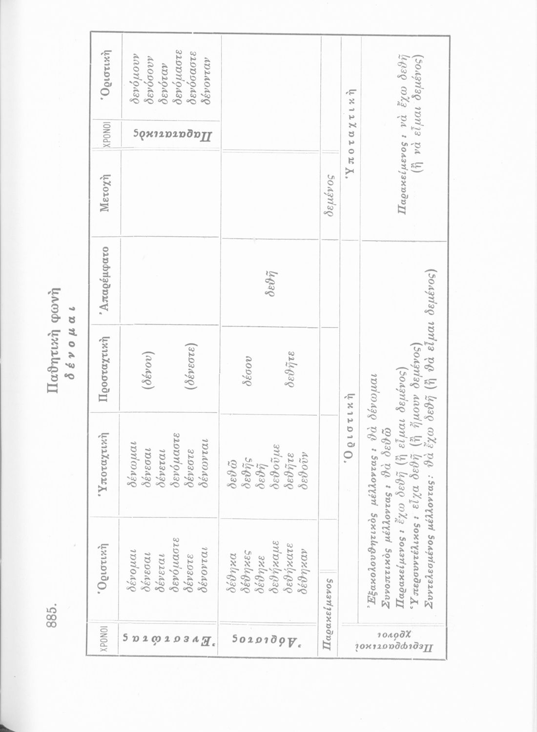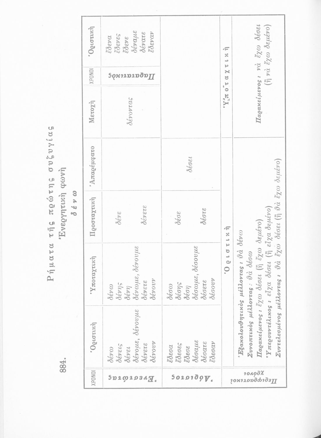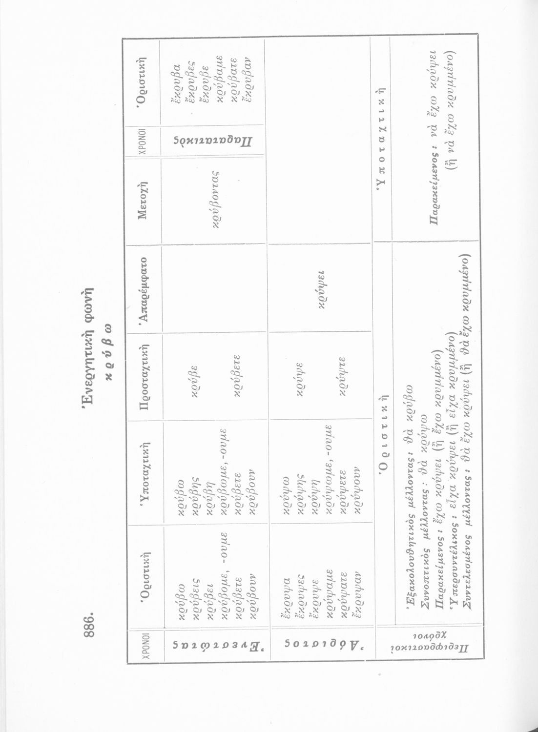Μαθητικό βοήθημα Δημοτικού που περιλαμβάνει τη γραμματική και το συντακτικό της καθαρεύουσας και πίνακες παραδειγμάτων.