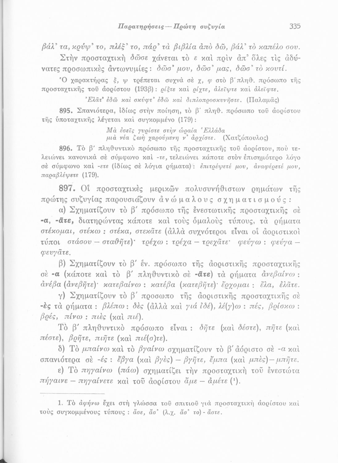 Σχολικό εγχειρίδιο Νέων Ελληνικών που παρουσιάζει το συντακτικό της κοινής δημοτικής μέσα από κανόνες και παραδείγματα.