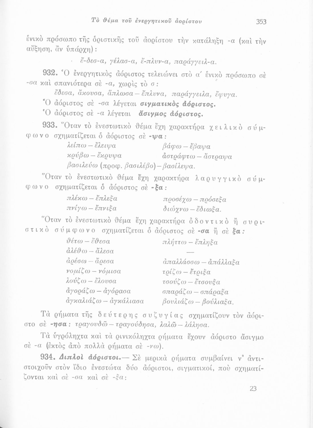 Σχολικό εγχειρίδιο Συντακτικού που γράφηκε από επιτροπή Καθηγητών που ορίστηκε από το Υπουργείο των Θρησκευμάτων και της Εθνικής Παιδείας. Περιλαμβάνει κανόνες και παραδείγματα του συντακτικού της Δημοτικής.