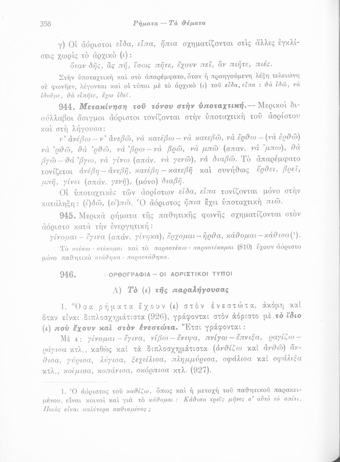 Σχολικό εγχειρίδιο για την Ε΄ και ΣΤ΄ τάξη Δημοτικού με γραμματικούς κανόνες και παραδείγματα για τα κλιτά και άκλιτα μέρη του λόγου.