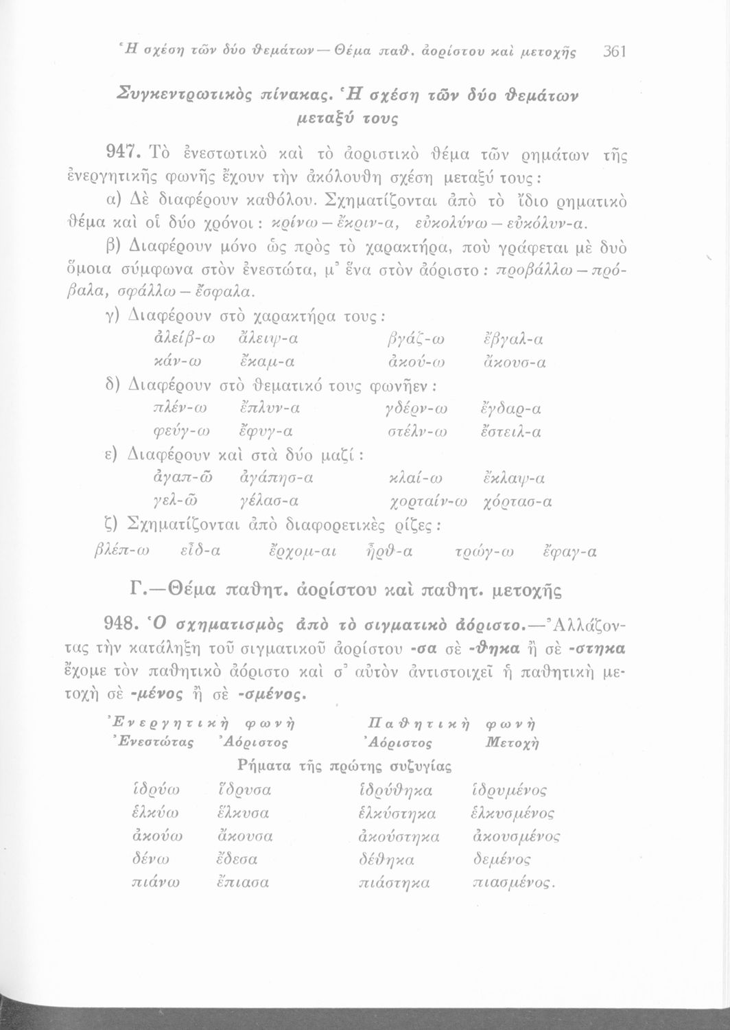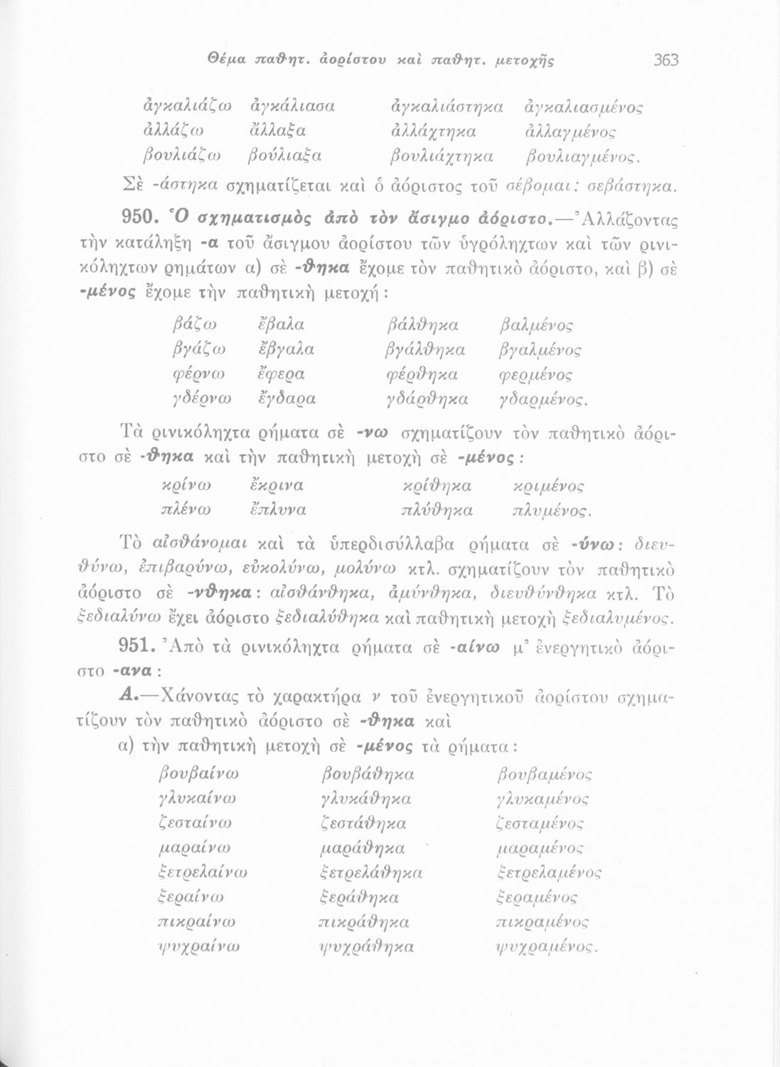 Μαθητικό βοήθημα Δημοτικού που περιλαμβάνει τη γραμματική και το συντακτικό της καθαρεύουσας και πίνακες παραδειγμάτων.