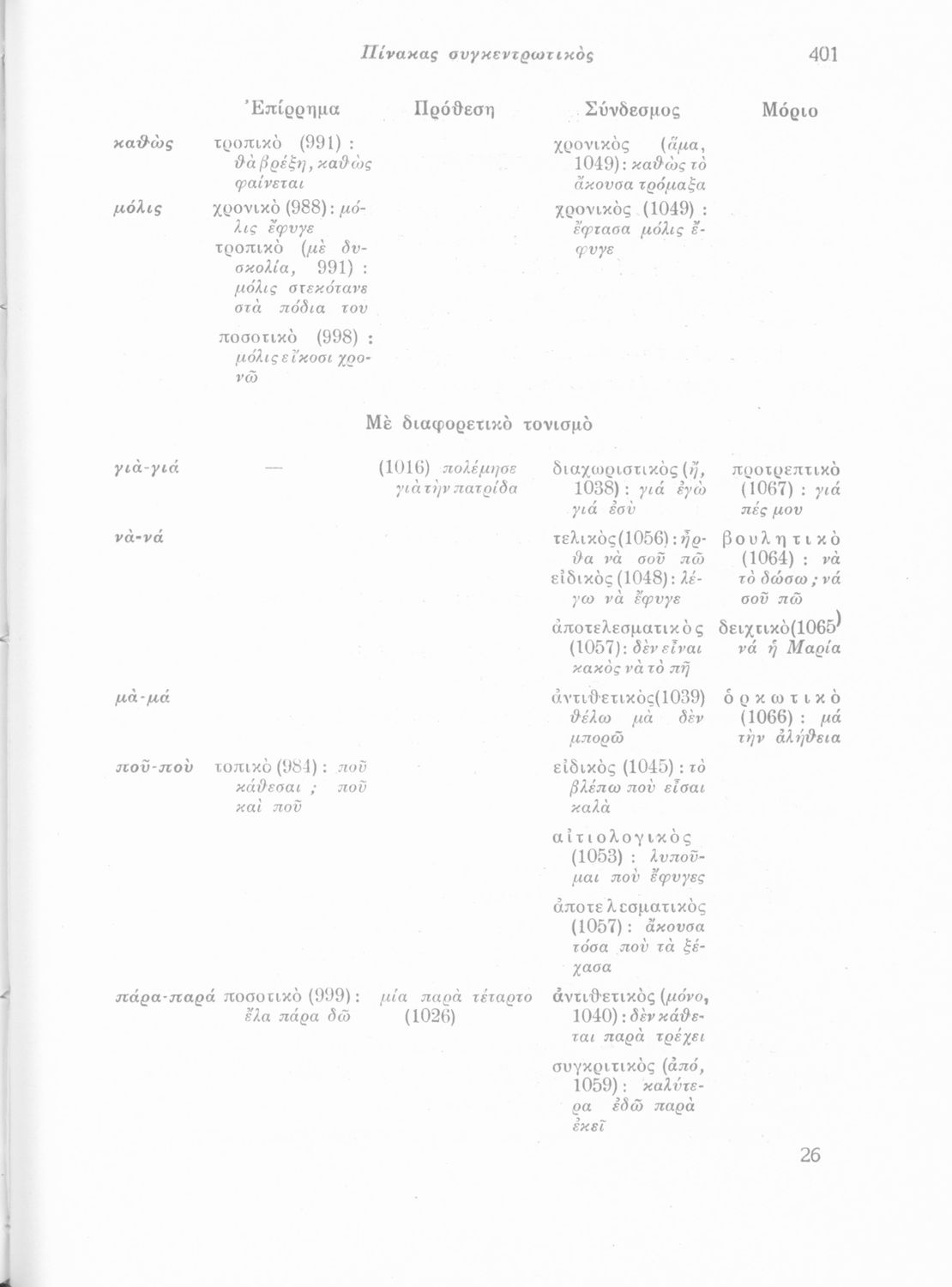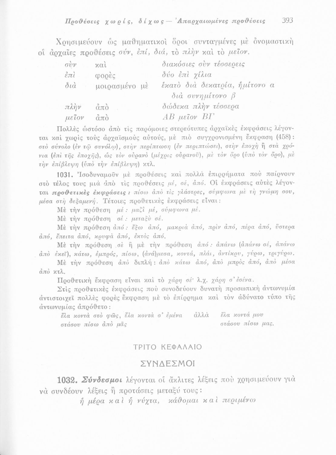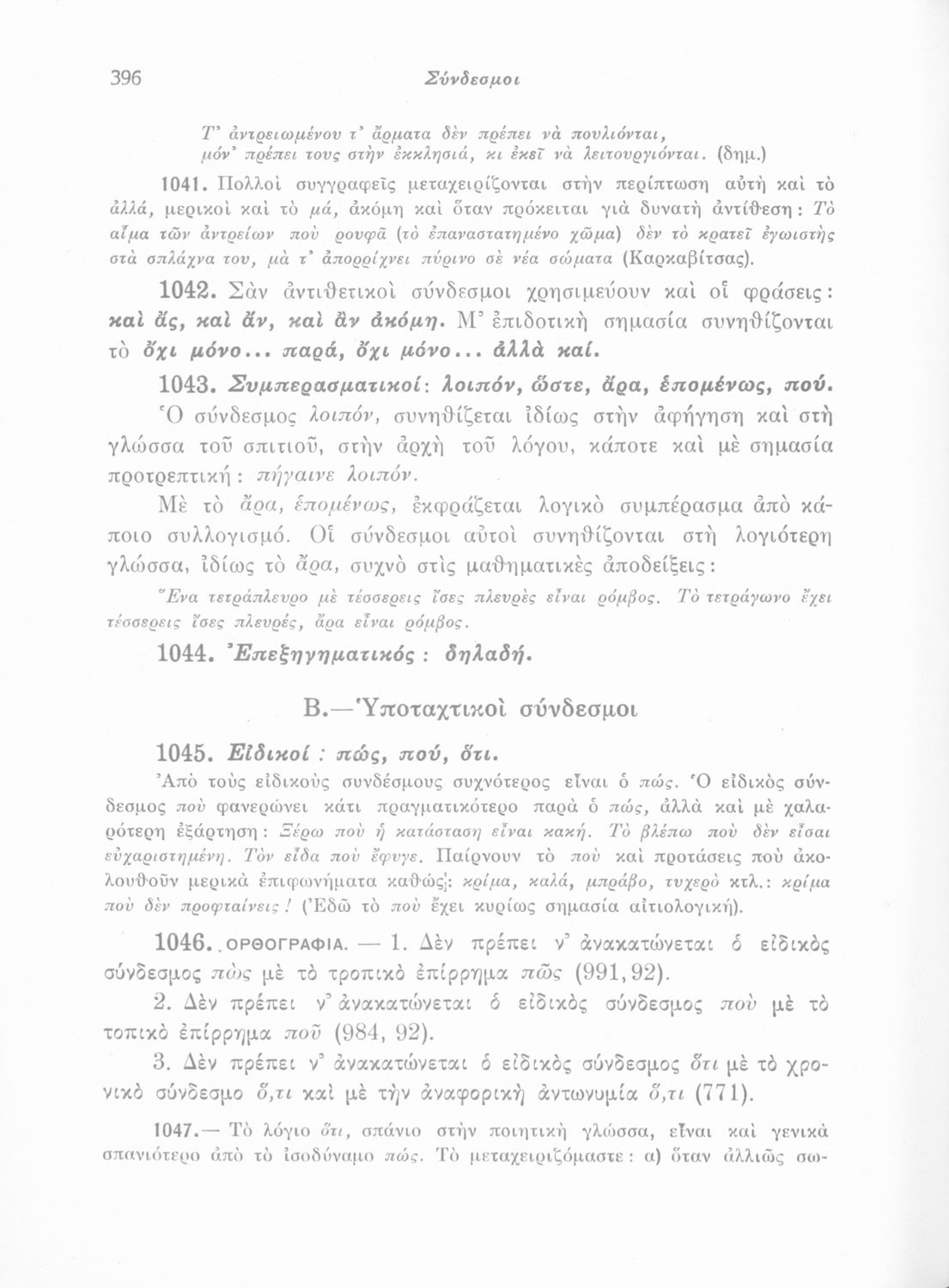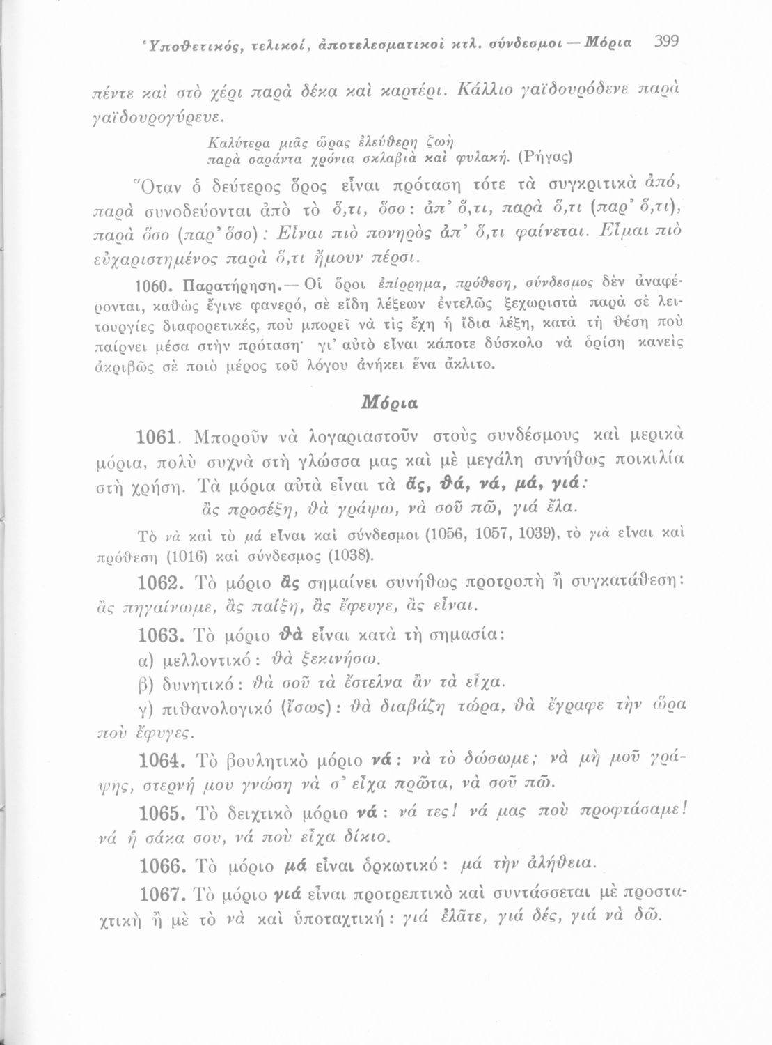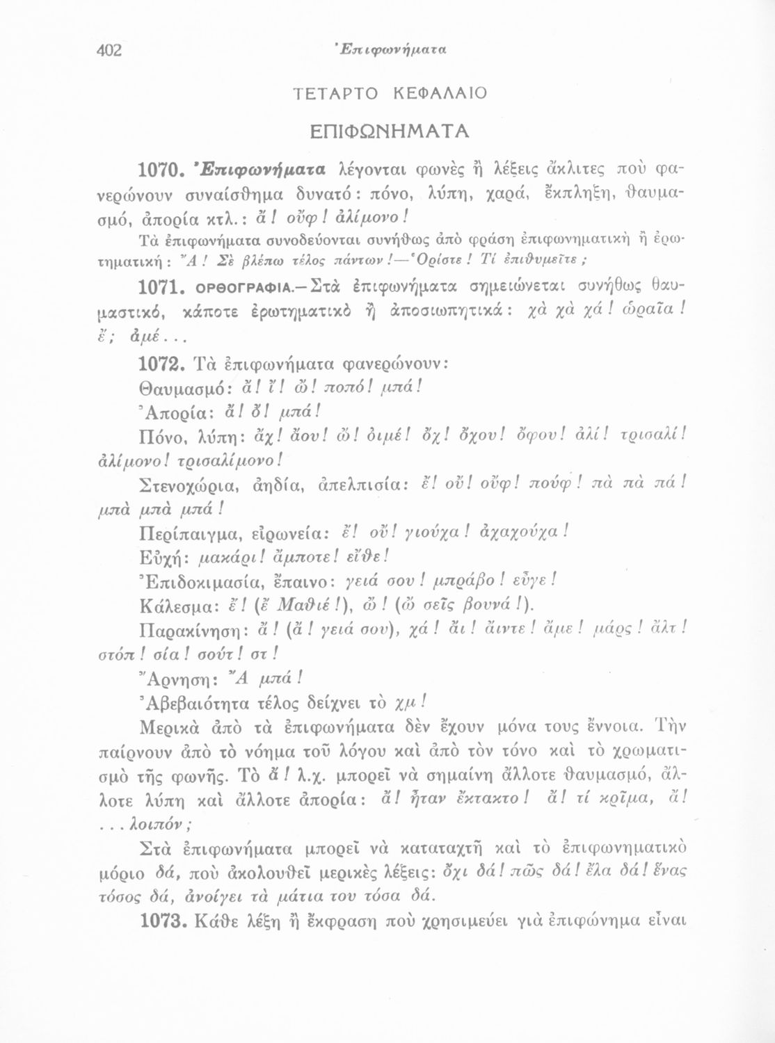 Σχολικό εγχειρίδιο Συντακτικού που γράφηκε από επιτροπή Καθηγητών που ορίστηκε από το Υπουργείο των Θρησκευμάτων και της Εθνικής Παιδείας. Περιλαμβάνει κανόνες και παραδείγματα του συντακτικού της Δημοτικής.