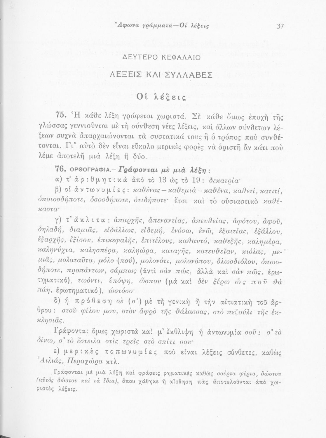 Σχολικό εγχειρίδιο για την Ε΄ και ΣΤ΄ τάξη Δημοτικού με γραμματικούς κανόνες και παραδείγματα για τα κλιτά και άκλιτα μέρη του λόγου.