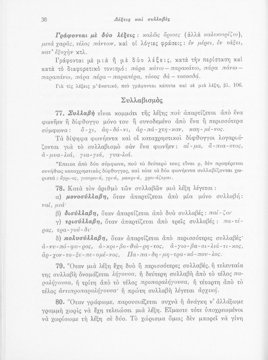 Σχολικό εγχειρίδιο Συντακτικού που γράφηκε από επιτροπή Καθηγητών που ορίστηκε από το Υπουργείο των Θρησκευμάτων και της Εθνικής Παιδείας. Περιλαμβάνει κανόνες και παραδείγματα του συντακτικού της Δημοτικής.