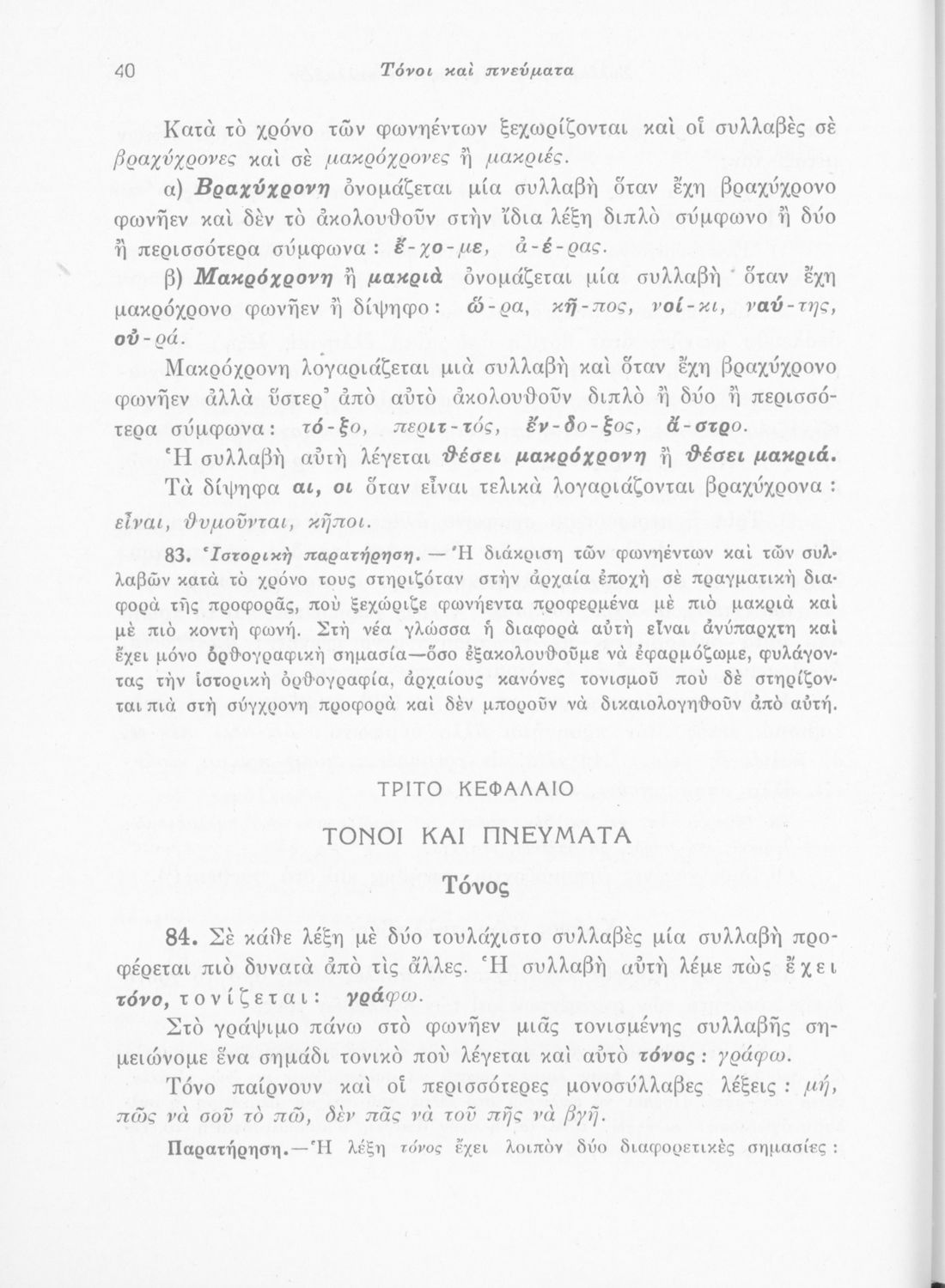 Παρουσίαση περιεχομένου: Σχολικό εγχειρίδιο Συντακτικού που γράφηκε από επιτροπή Καθηγητών που ορίστηκε από το Υπουργείο των Θρησκευμάτων και της Εθνικής Παιδείας. Περιλαμβάνει κανόνες και παραδείγματα του συντακτικού της Δημοτικής.
