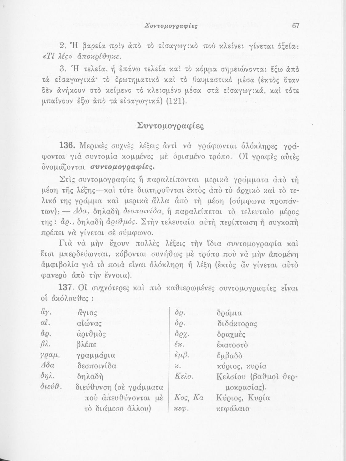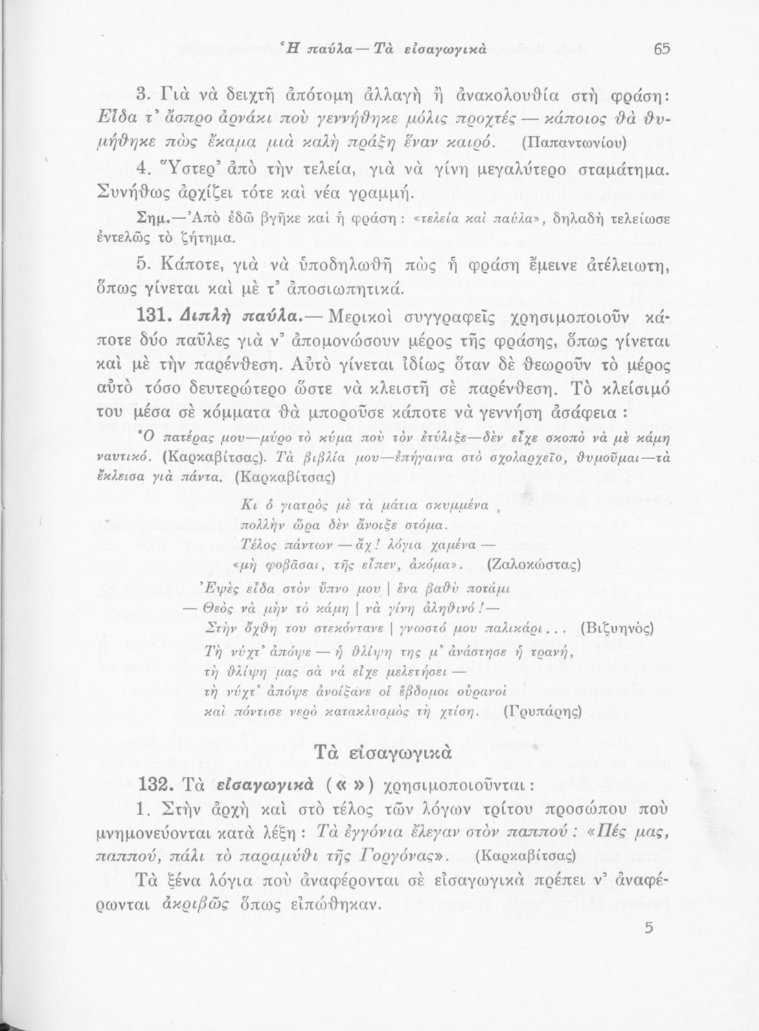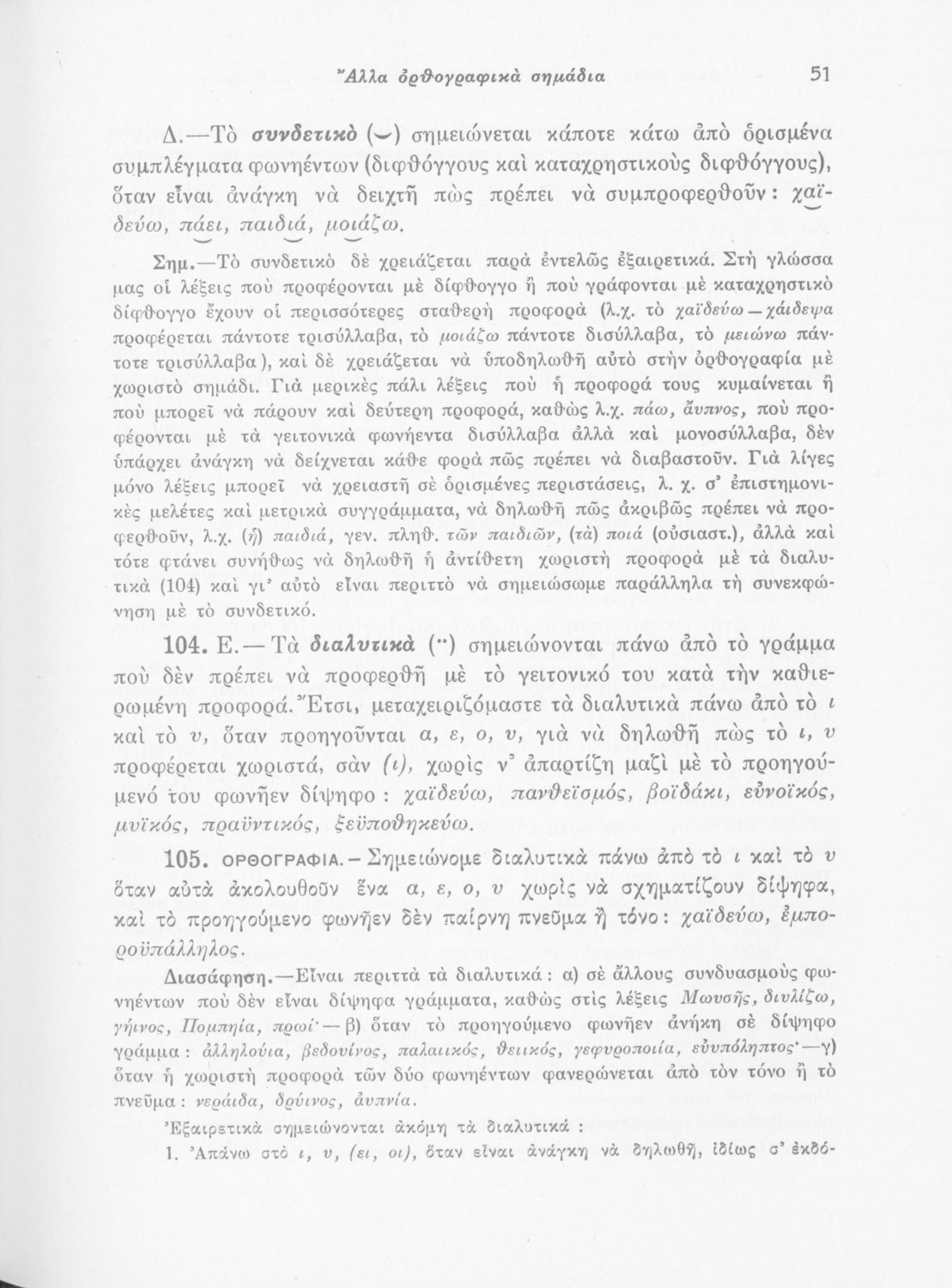 Σχολικό εγχειρίδιο Συντακτικού που γράφηκε από επιτροπή Καθηγητών που ορίστηκε από το Υπουργείο των Θρησκευμάτων και της Εθνικής Παιδείας. Περιλαμβάνει κανόνες και παραδείγματα του συντακτικού της Δημοτικής.