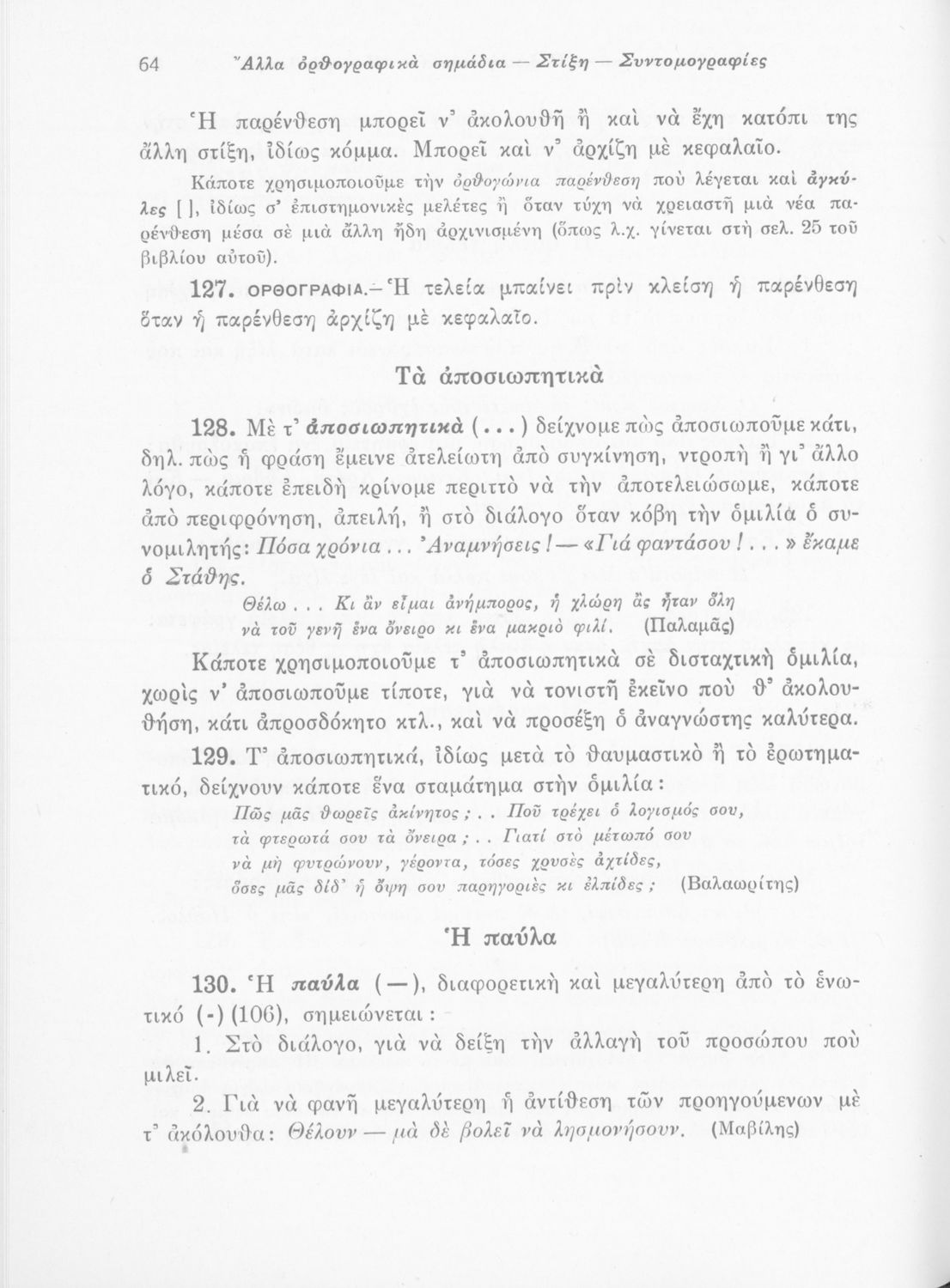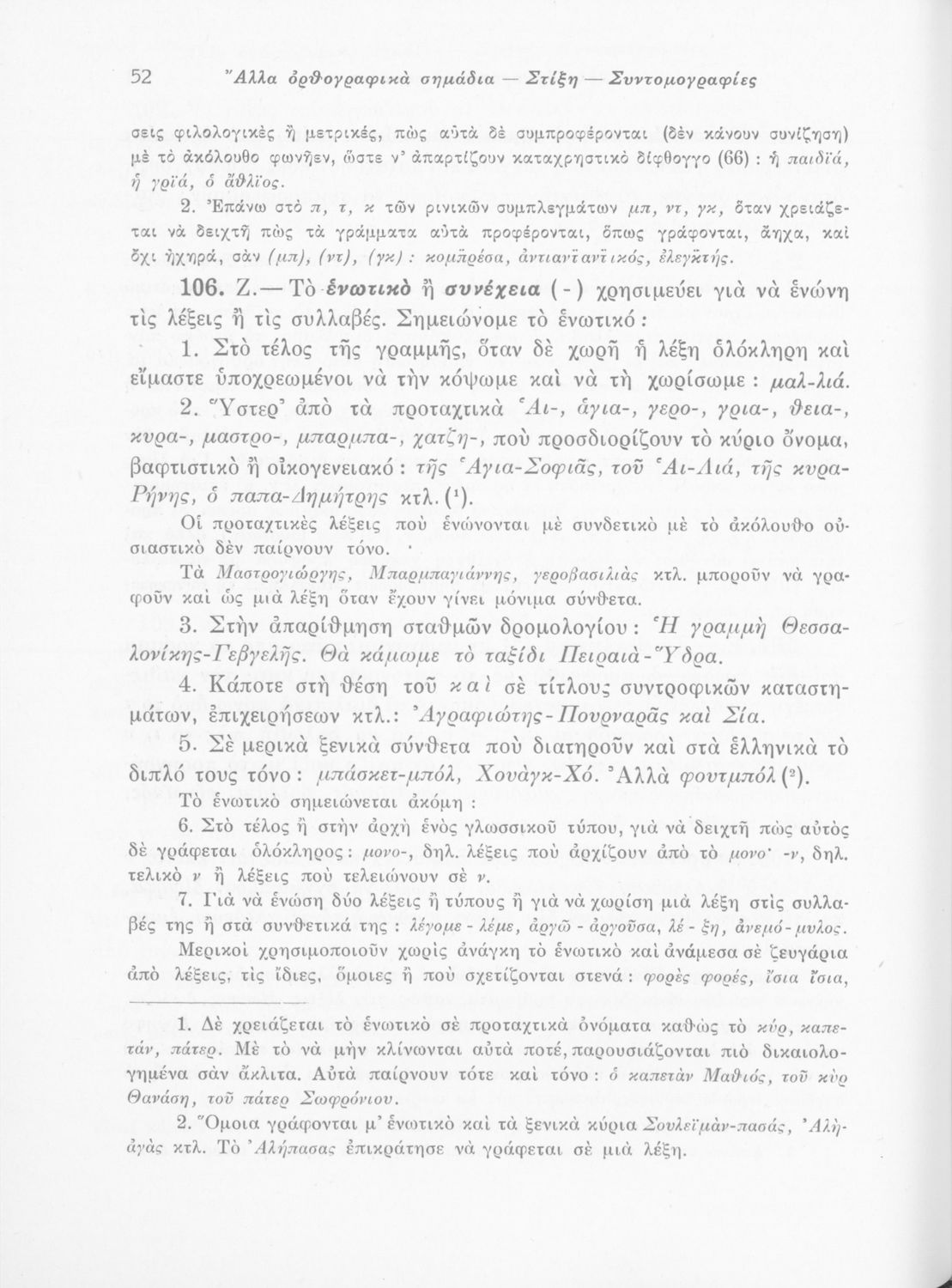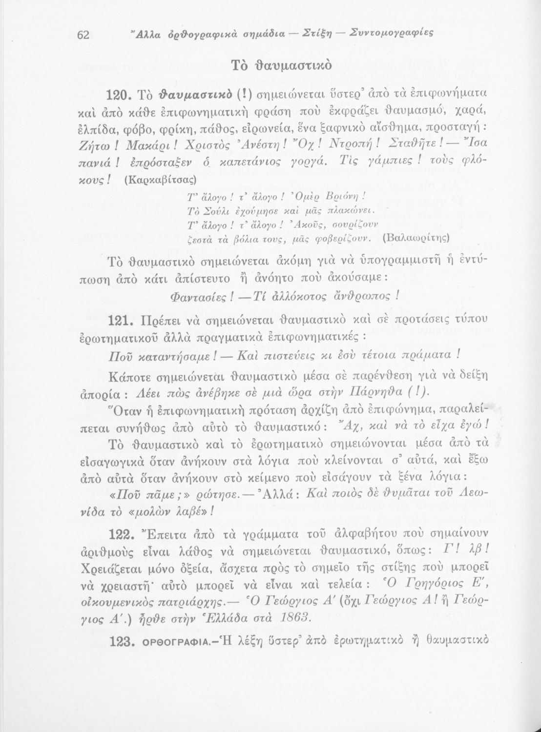 Σχολικό εγχειρίδιο Συντακτικού που γράφηκε από επιτροπή Καθηγητών που ορίστηκε από το Υπουργείο των Θρησκευμάτων και της Εθνικής Παιδείας. Περιλαμβάνει κανόνες και παραδείγματα του συντακτικού της Δημοτικής.
