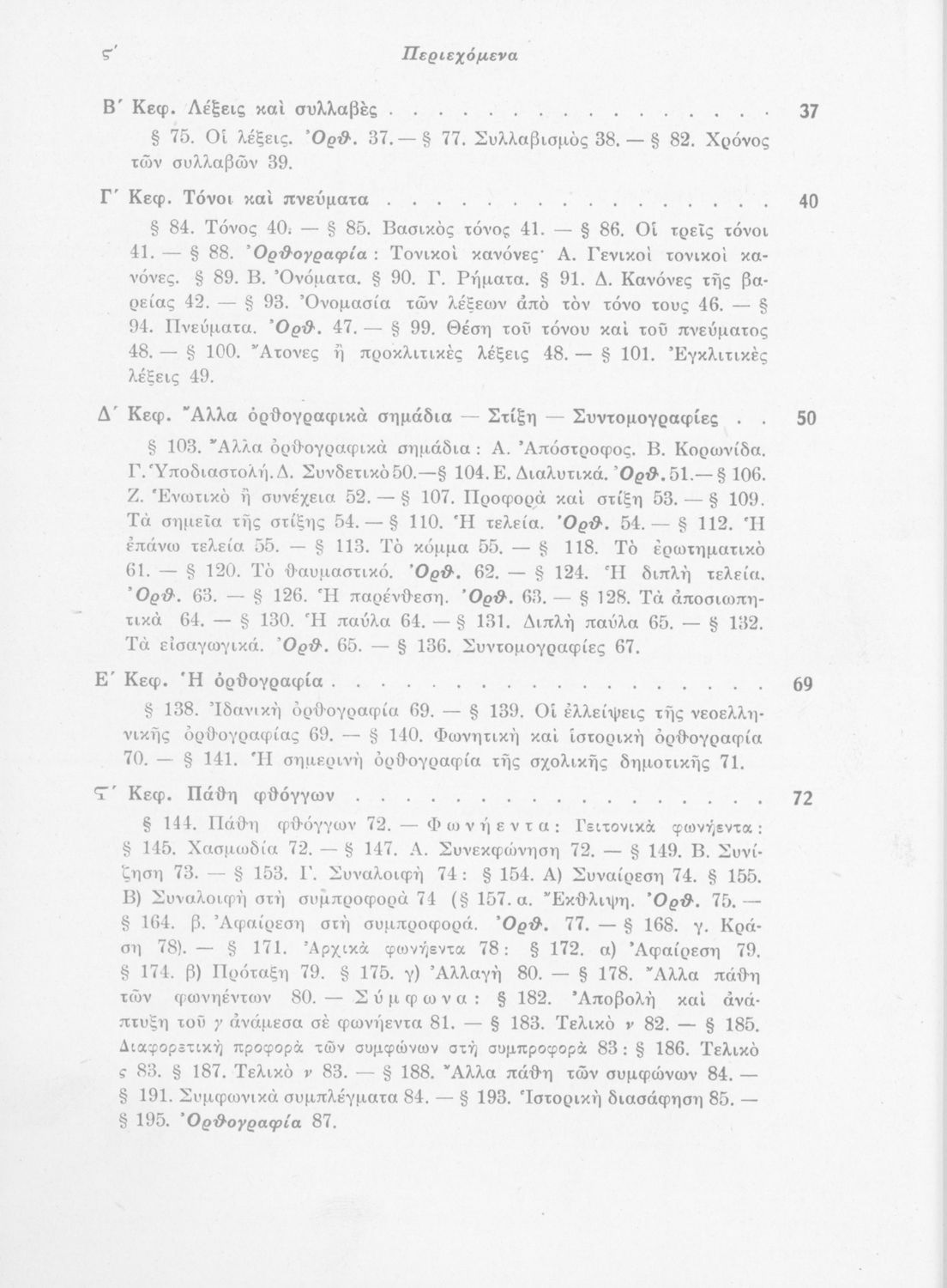Παρουσίαση περιεχομένου: Σχολικό εγχειρίδιο Συντακτικού που γράφηκε από επιτροπή Καθηγητών που ορίστηκε από το Υπουργείο των Θρησκευμάτων και της Εθνικής Παιδείας. Περιλαμβάνει κανόνες και παραδείγματα του συντακτικού της Δημοτικής.