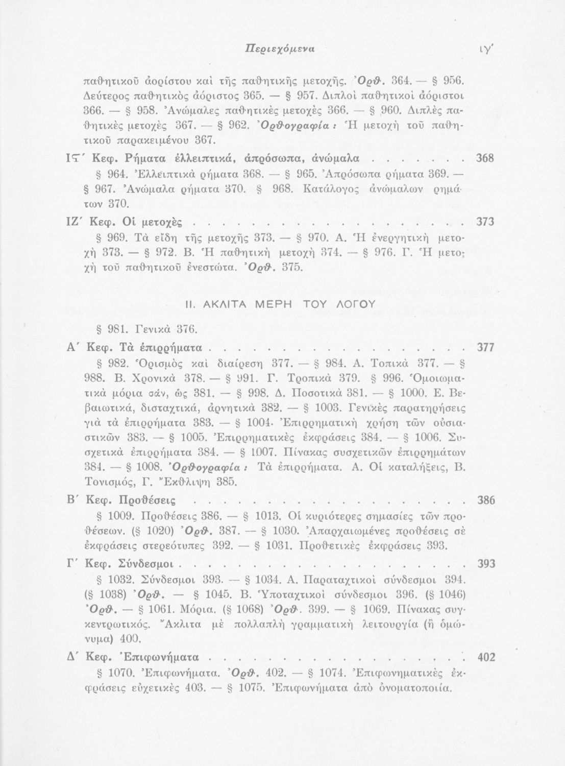 Σχολικό εγχειρίδιο Συντακτικού που γράφηκε από επιτροπή Καθηγητών που ορίστηκε από το Υπουργείο των Θρησκευμάτων και της Εθνικής Παιδείας. Περιλαμβάνει κανόνες και παραδείγματα του συντακτικού της Δημοτικής.