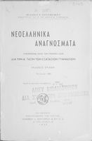 Βαθμίδα εκπαίδευσης: Δευτεροβάθμια Τάξη: Β' Γυμνασίου Μάθημα: Νέα Ελληνικά Γλώσσα: Απλή καθαρεύουσα / Δημοτική Παρουσίαση περιεχομένου: Σχολικό εγχειρίδιο Νέων Ελληνικών Β΄ Εξαταξίου Γυμνασίου που περιλαμβάνει που περιλαμβάνει ποιήματα και πεζά Ελλήνων συγγραφέων εμπνευσμένα από την αρχαία και σύγχρονη ελληνική ιστορία, την ελληνική φύση και την καθημερινή ζωή. Περιέχει και παράρτημα με βιογραφίες των συγγραφέων και λεξιλόγιο. |
