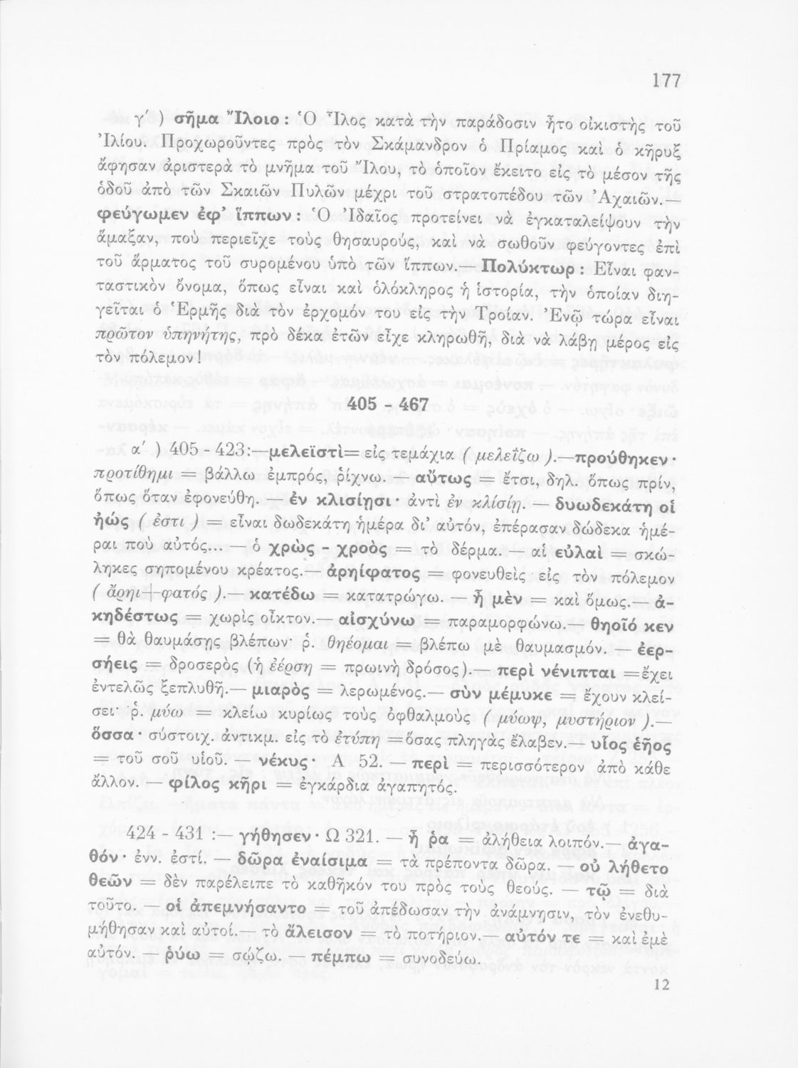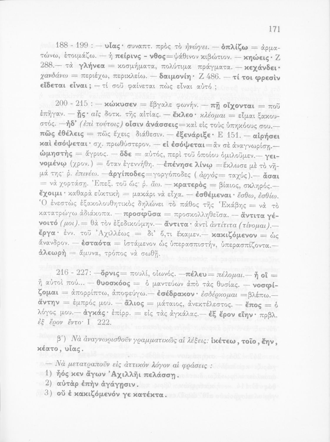 Σχολικό εγχειρίδιο Αρχαίων Ελληνικών της Ε΄ Γυμνασίου το οποίο περιλαμβάνει επιλεγμένα μέρη από την Ιλιάδα. Τα αποσπάσματα συνοδεύονται από γλωσσικές και ερμηνευτικές σημειώσεις.