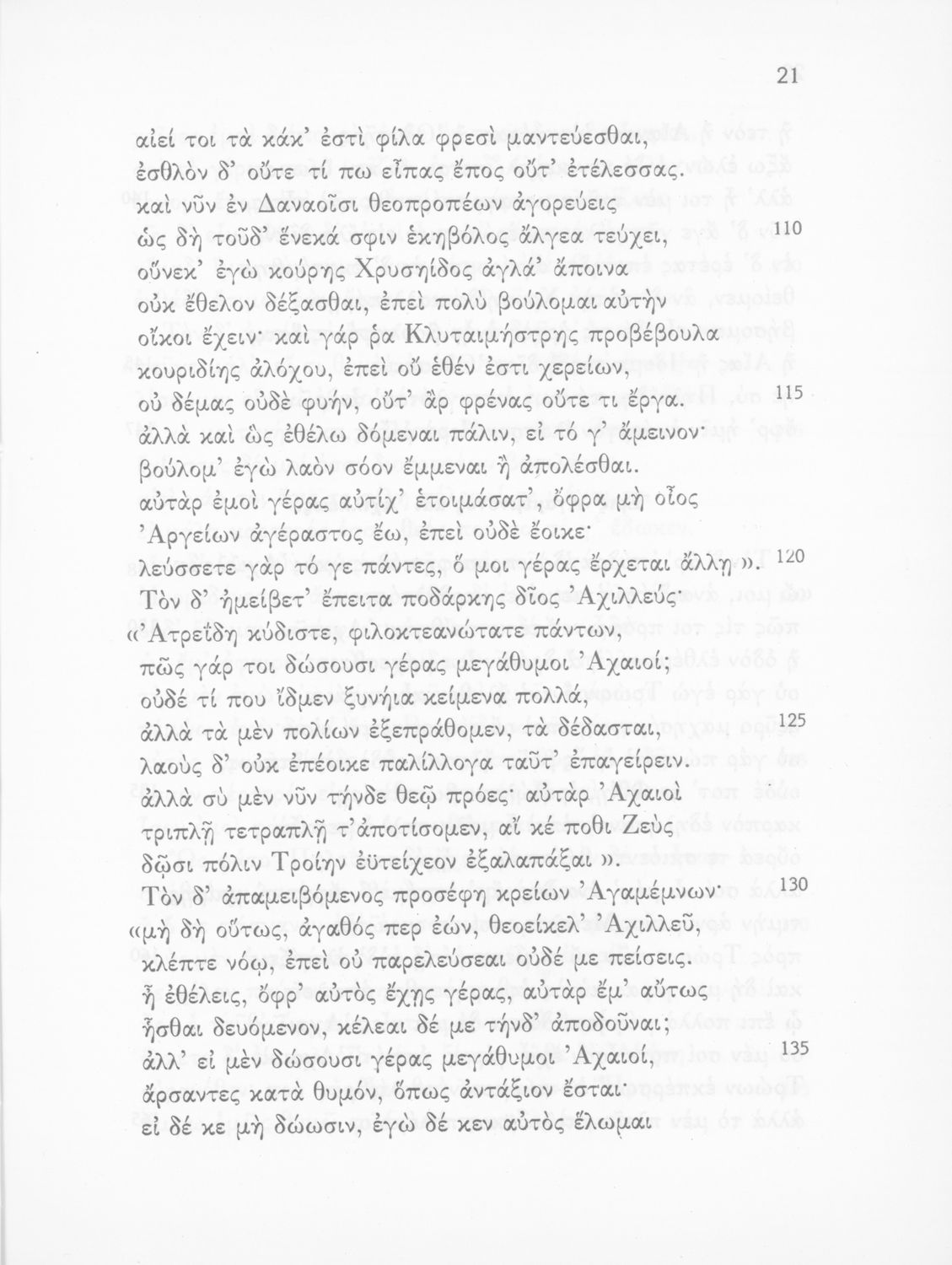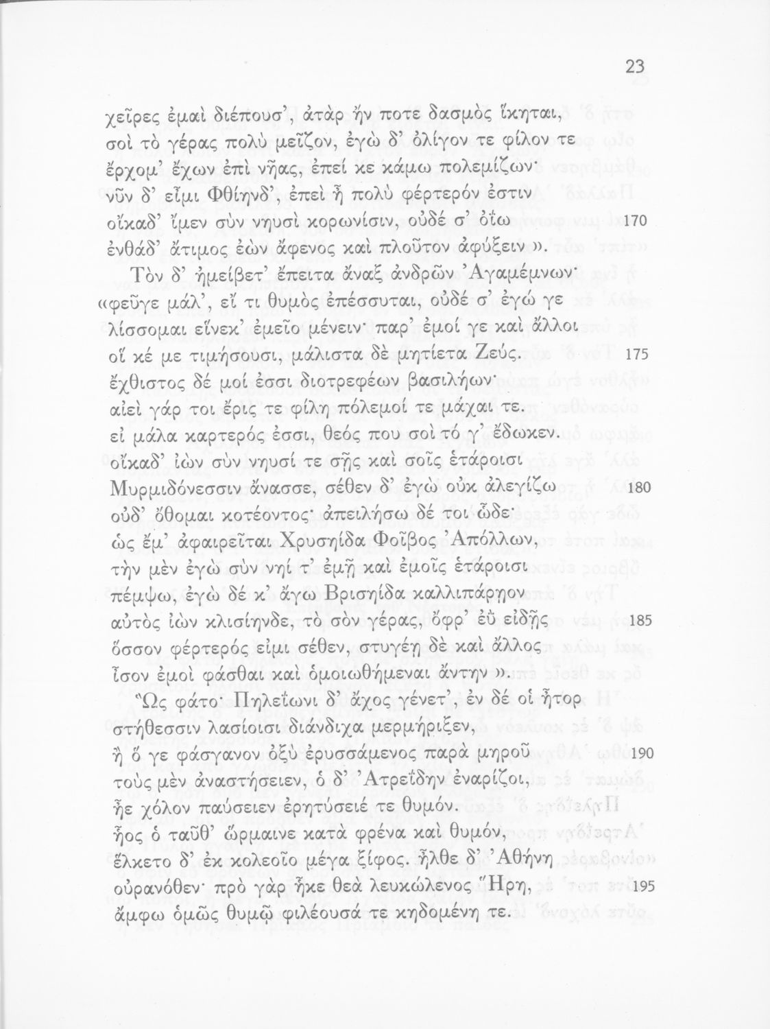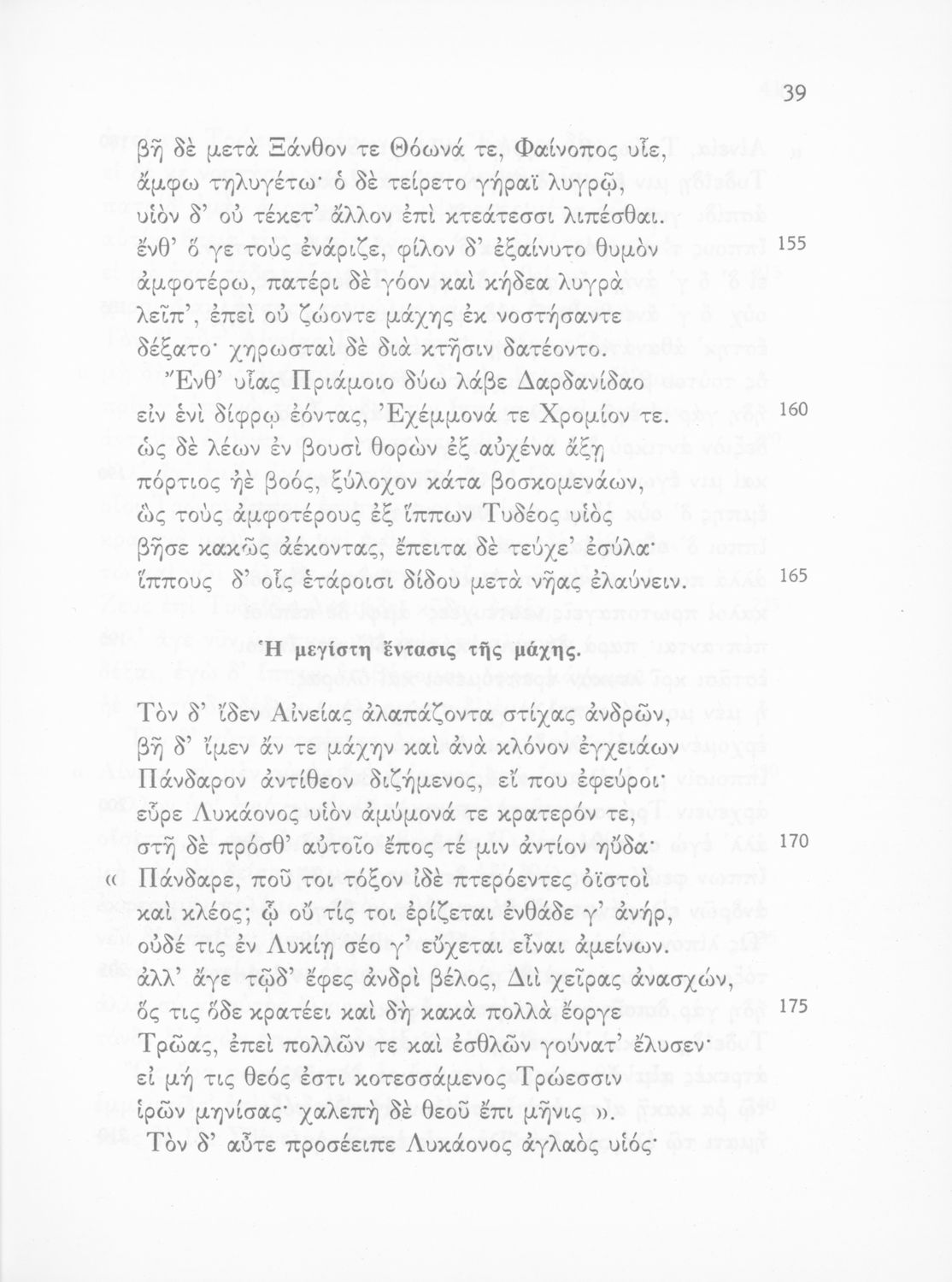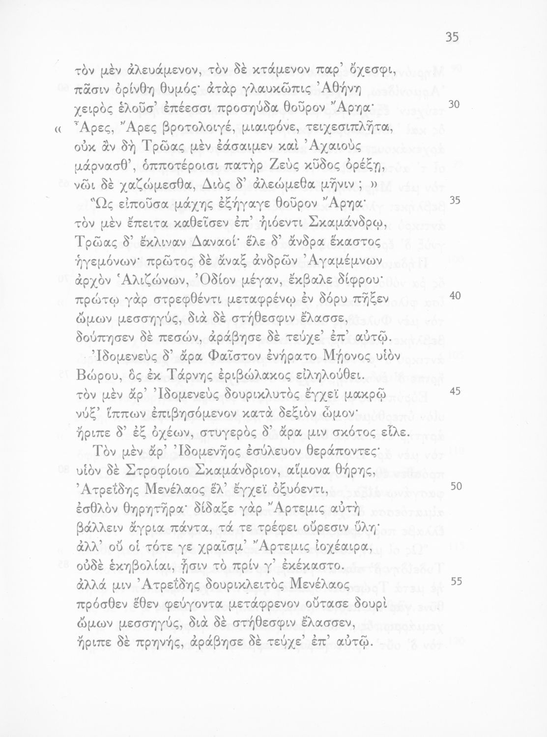 Σχολικό εγχειρίδιο Αρχαίων Ελληνικών της Ε΄ Γυμνασίου το οποίο περιλαμβάνει επιλεγμένα μέρη από την Ιλιάδα. Τα αποσπάσματα συνοδεύονται από γλωσσικές και ερμηνευτικές σημειώσεις.