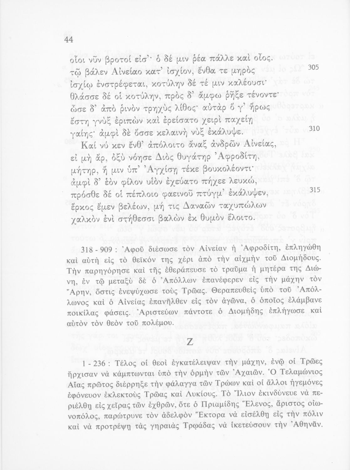 Σχολικό εγχειρίδιο Ε' Γυμνασίου για το μάθημα των Αρχαίων Ελληνικών. Περιλαμβάνει αποσπάσματα από ραψωδίες της Ιλιάδας, ερμηνευτικά και πραγματολογικά σχόλια και λεξιλογικές παρατηρήσεις.