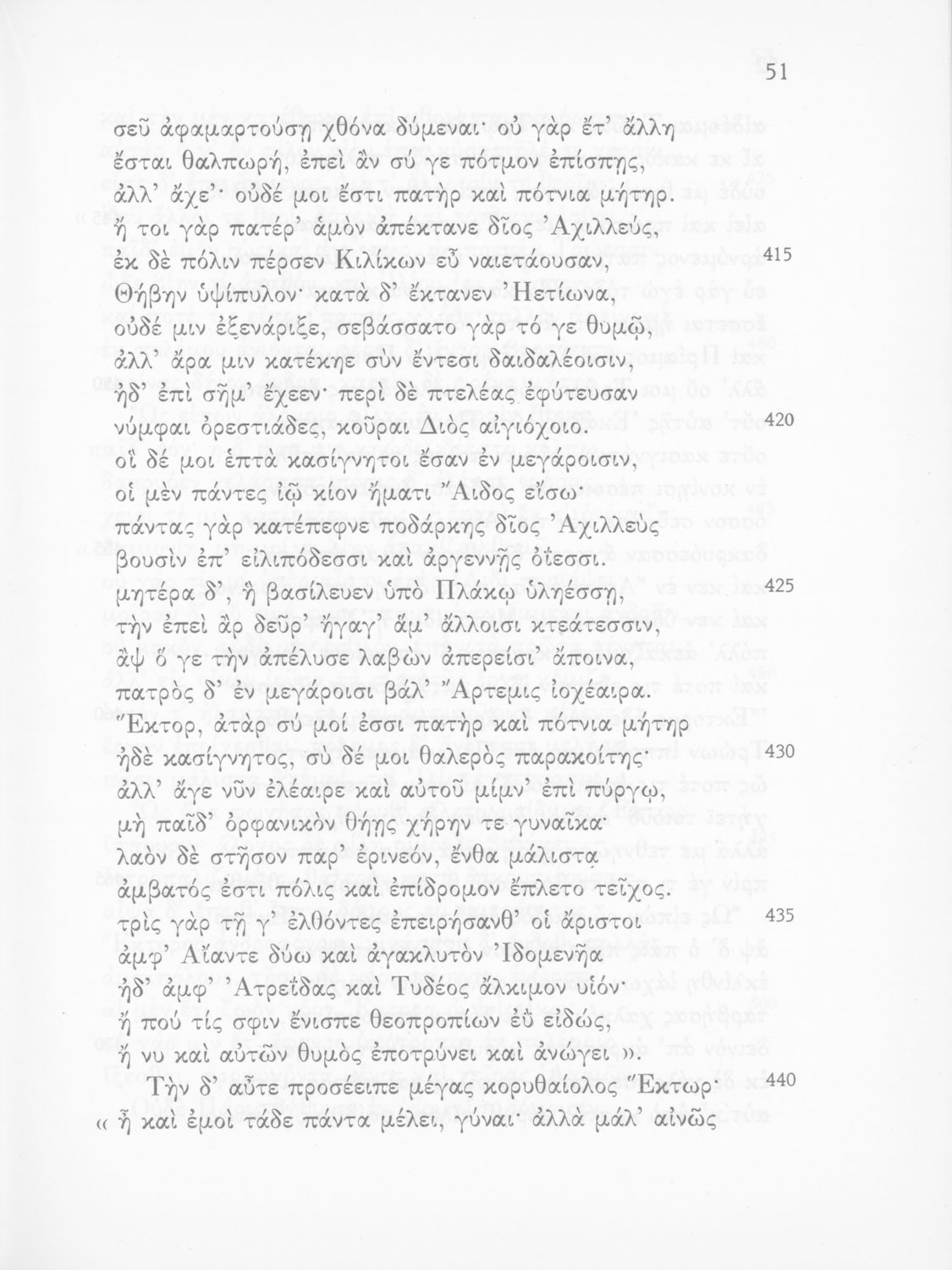 Σχολικό εγχειρίδιο Αρχαίων Ελληνικών της Ε΄ Γυμνασίου το οποίο περιλαμβάνει επιλεγμένα μέρη από την Ιλιάδα. Τα αποσπάσματα συνοδεύονται από γλωσσικές και ερμηνευτικές σημειώσεις.