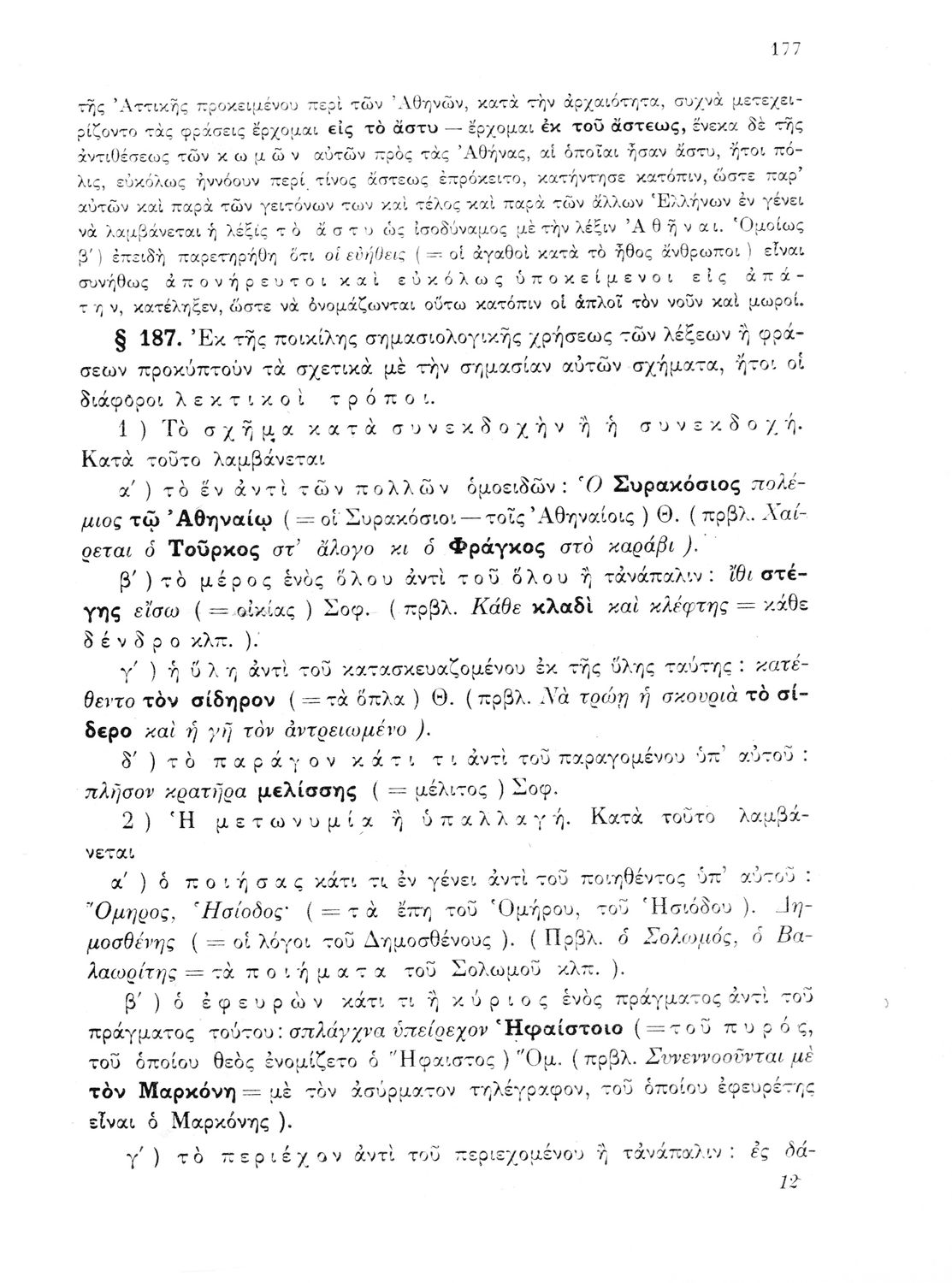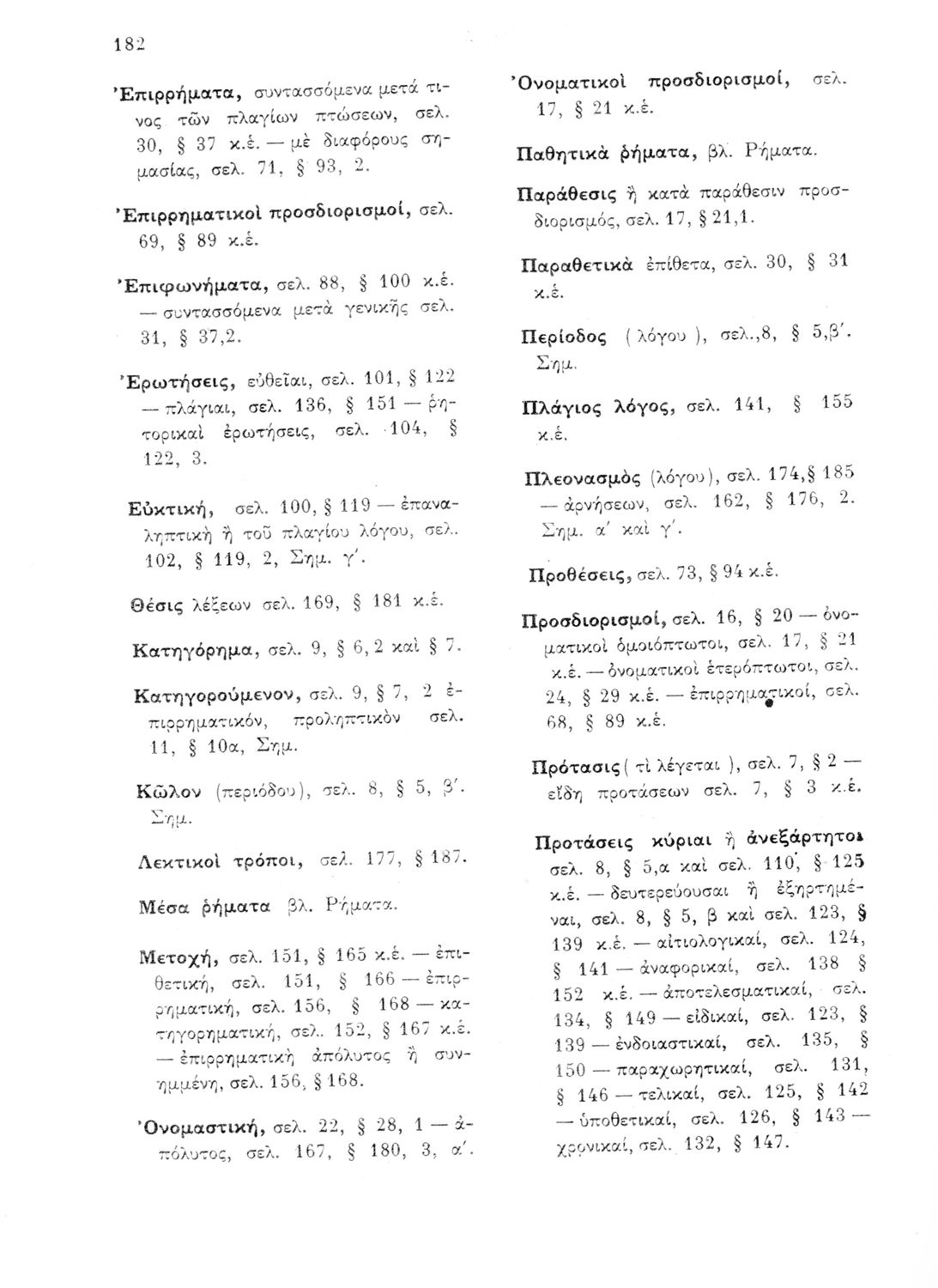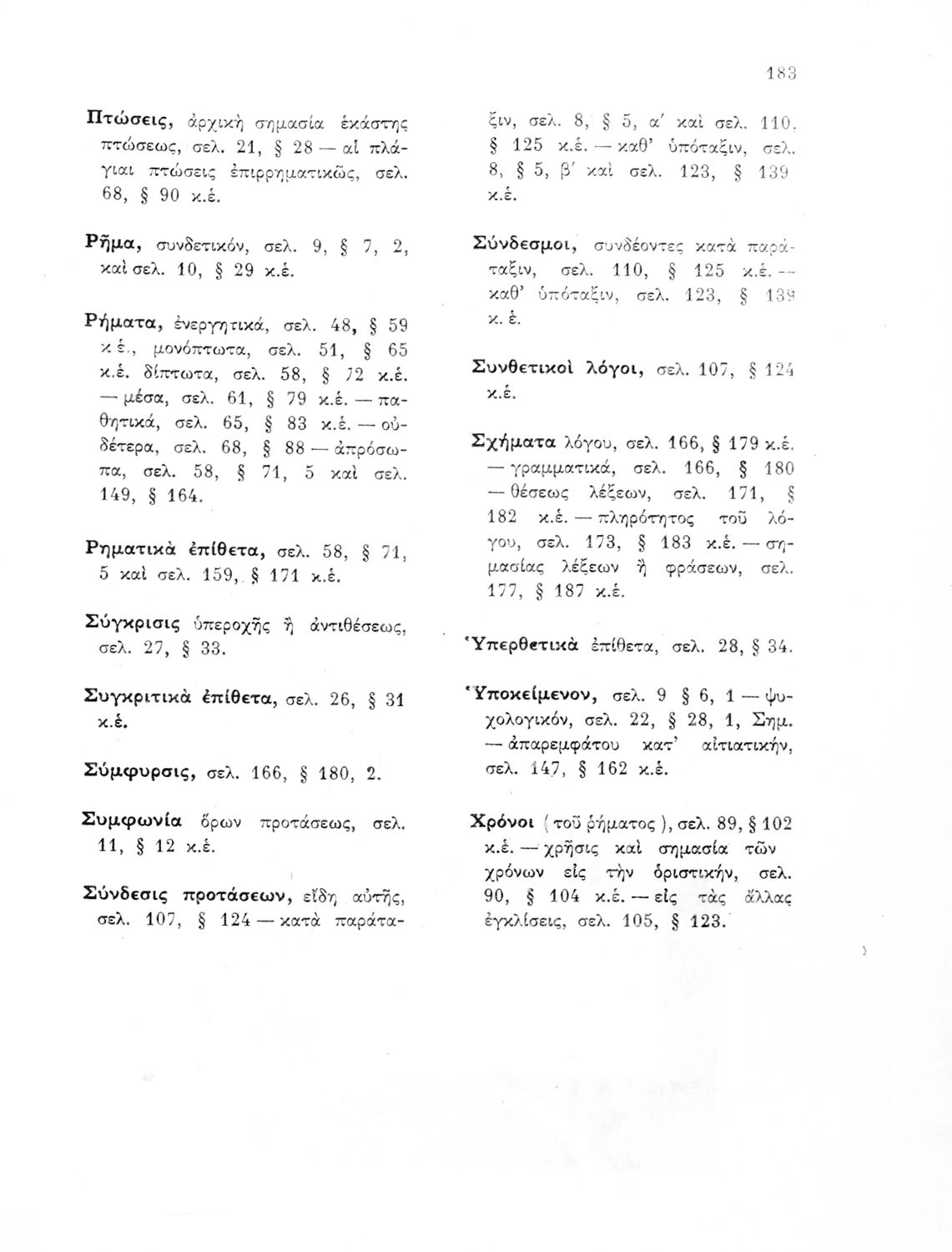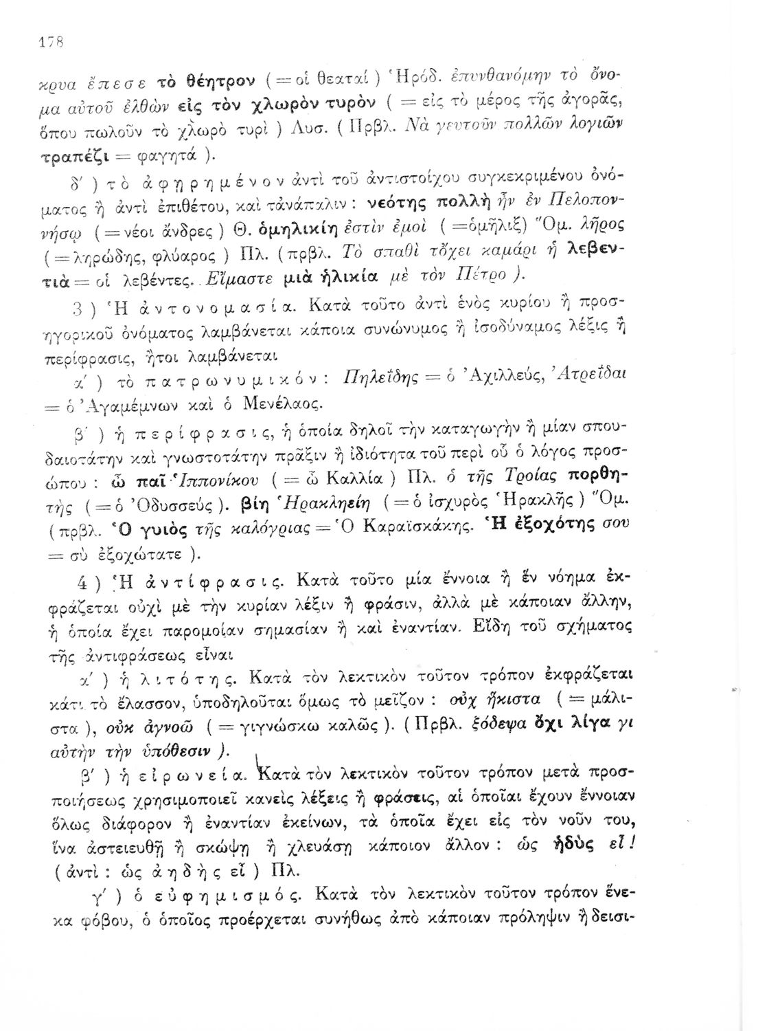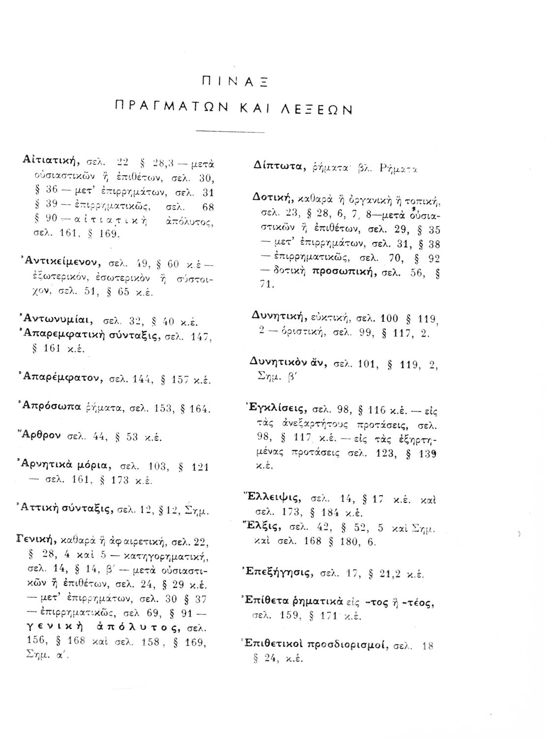Σχολικό εγχειρίδιο Αρχαίων Ελληνικών Α', Β', και Γ' Γυμνασίου που περιέχει τους κανόνες γραμματικής και είναι χωρισμένο σε φθογγολογικό, τυπολογικό και ετυμολογικό μέρος. Περιέχει και κατάλογο ανωμάλων ρημάτων.