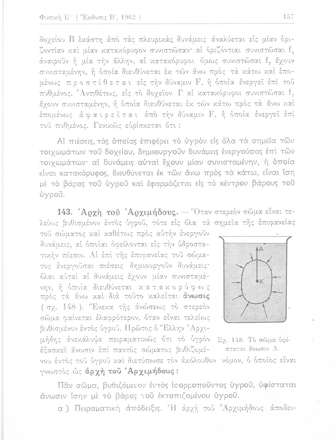 Σχολικό εγχειρίδιο της Ε΄ Τάξης των Γυμνασίων Παλαιού Τύπου για το μάθημα της Φυσικής. Παρέχει βασικές γνώσεις της Φυσικής επιστήμης. Αναλύει τα φαινόμενα της μηχανικής, της βαρύτητας, της υδροστατικής της ...