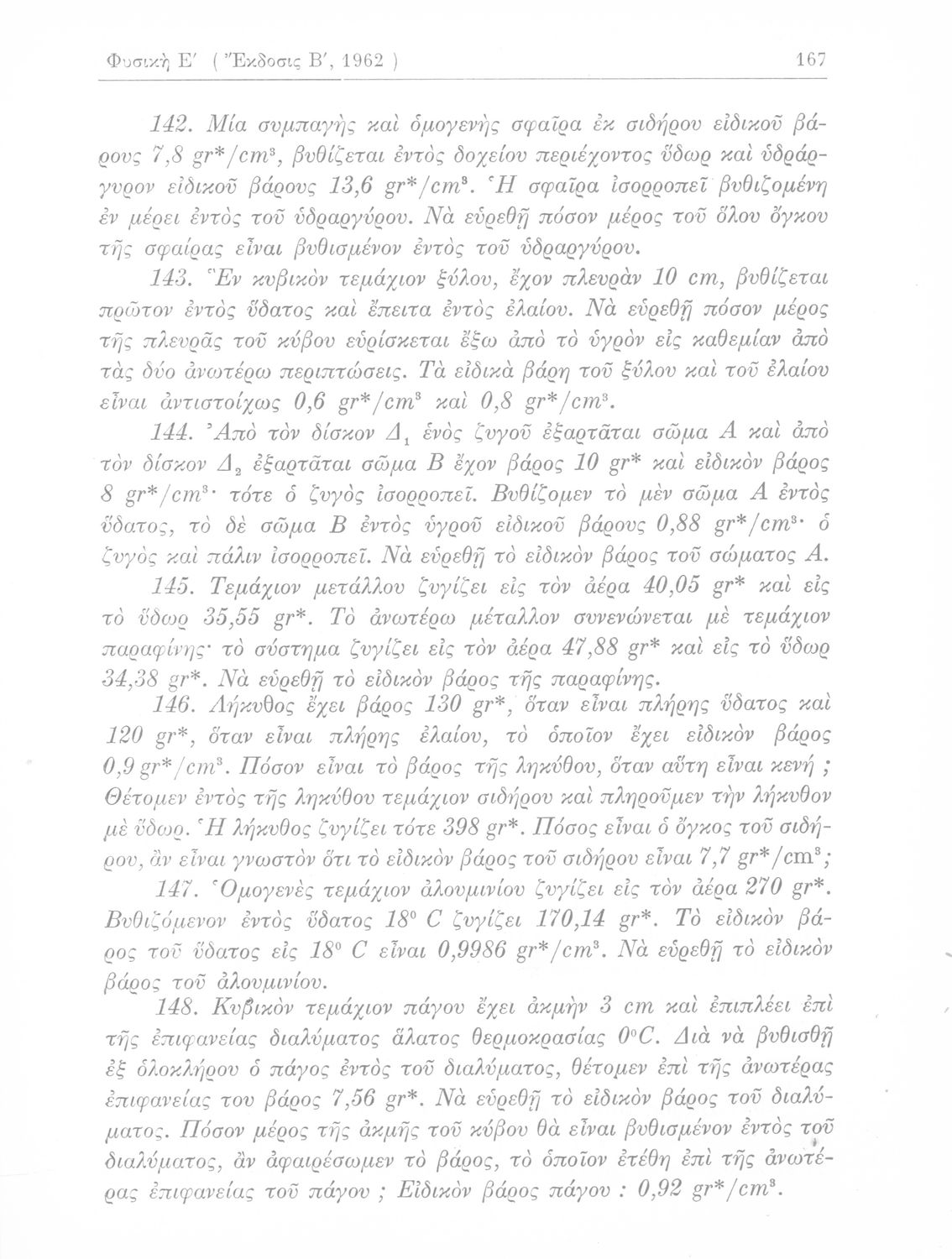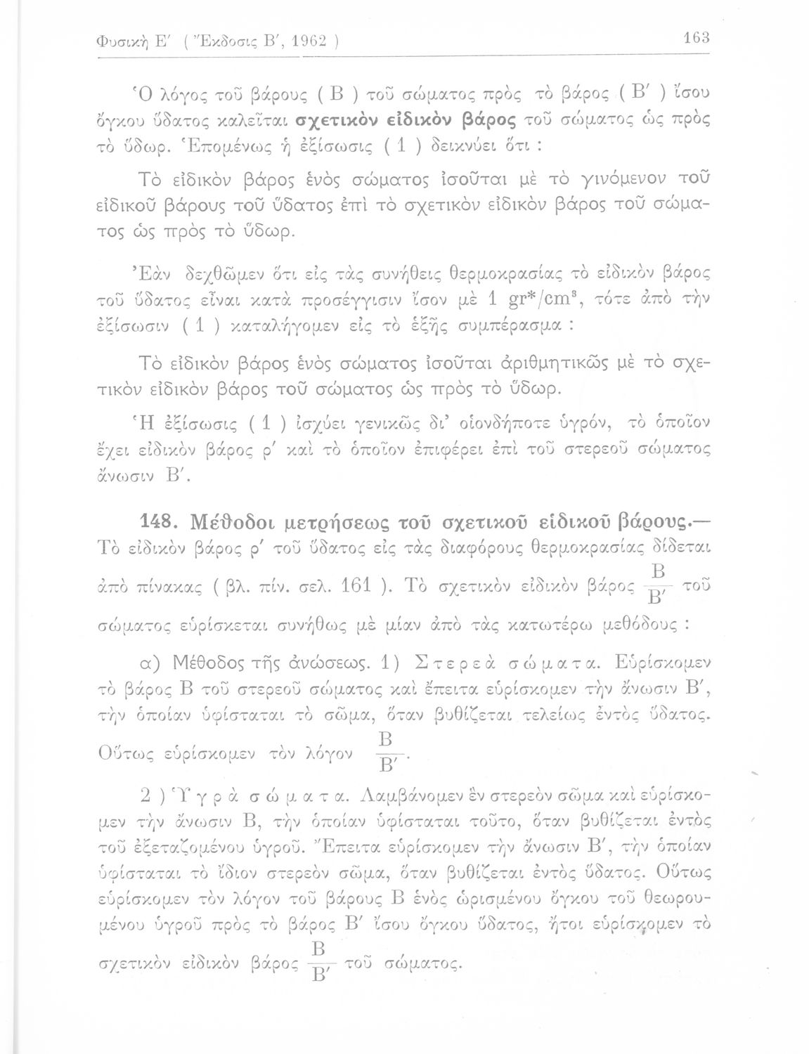 Σχολικό εγχειρίδιο της Ε΄ Τάξης των Γυμνασίων Παλαιού Τύπου για το μάθημα της Φυσικής. Παρέχει βασικές γνώσεις της Φυσικής επιστήμης. Αναλύει τα φαινόμενα της μηχανικής, της βαρύτητας, της υδροστατικής της ...