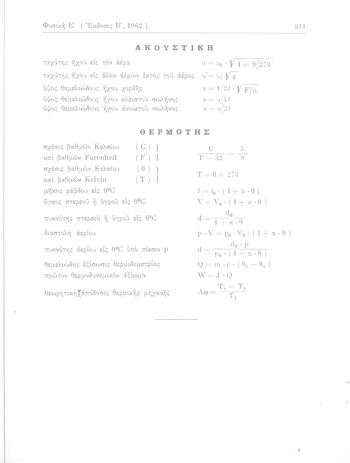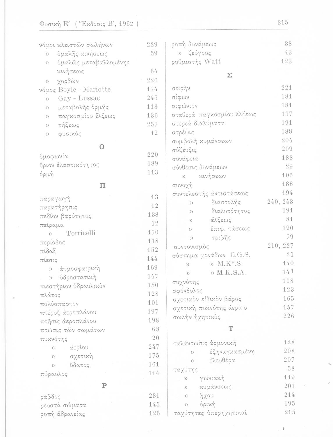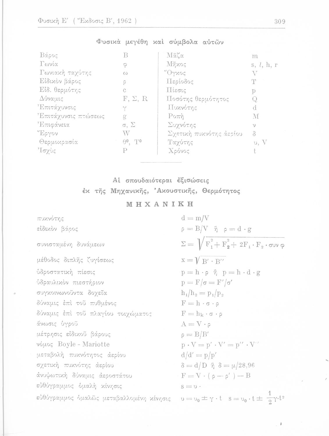 Σχολικό εγχειρίδιο της Ε΄ Τάξης των Γυμνασίων Παλαιού Τύπου για το μάθημα της Φυσικής. Παρέχει βασικές γνώσεις της Φυσικής επιστήμης. Αναλύει τα φαινόμενα της μηχανικής, της βαρύτητας, της υδροστατικής της ...