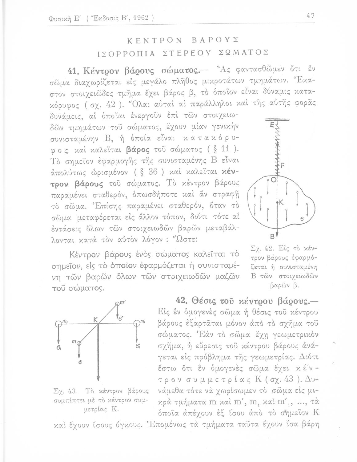 Σχολικό εγχειρίδιο της Ε΄ Τάξης των Γυμνασίων Παλαιού Τύπου για το μάθημα της Φυσικής. Παρέχει βασικές γνώσεις της Φυσικής επιστήμης. Αναλύει τα φαινόμενα της μηχανικής, της βαρύτητας, της υδροστατικής της ...