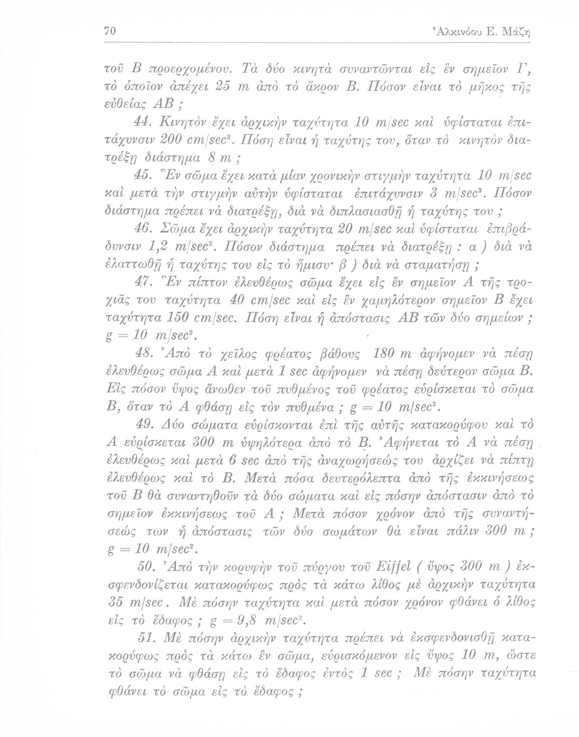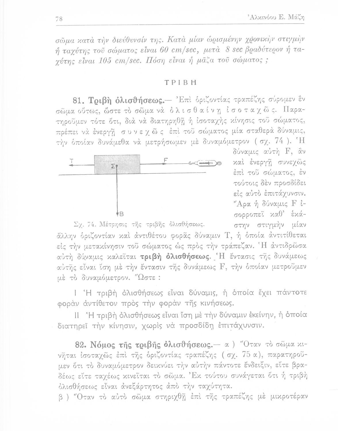 Κωδικός αναγνώρισης: 01-17164 Τίτλος: Φυσική δια την Ε΄ τάξιν των Εξαταξίων Γυμνασίων Συγγραφέας: Αλκίνοος Ε. Μάζης Εικονογράφος: Γ. Κ. Ντουφέξης Μέγεθος και υπόστρωμα: Σχολικό εγχειρίδιο, σκληρό εξώφυλλο, 317 σελίδες. Σχέδια και σχήματα (ασπρόμαυρα). |