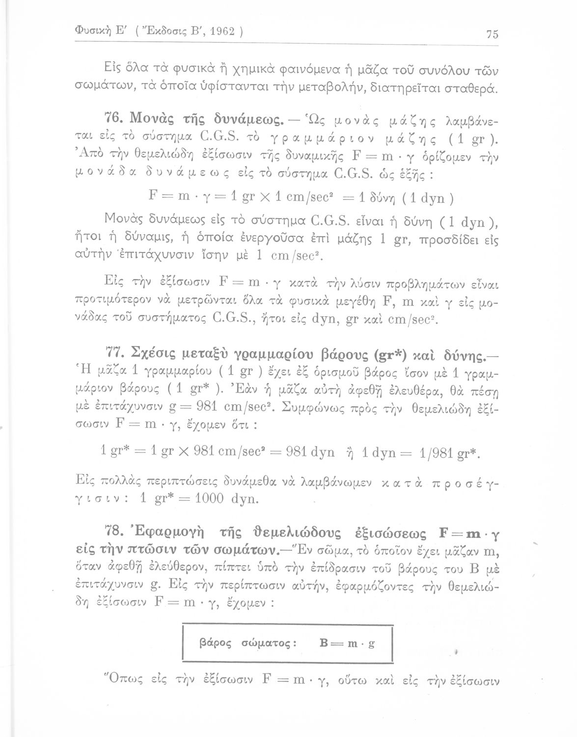 Βαθμίδα εκπαίδευσης: Δευτεροβάθμια Τάξη: Ε' Γυμνασίου Μάθημα: Φυσική Γλώσσα: Καθαρεύουσα Παρουσίαση περιεχομένου: Σχολικό εγχειρίδιο Φυσικής Ε΄ Γυμνασίου που εστιάζει στα φυσικά φαινόμενα που απαντιούνται στα στερεά, υγρά και αέρια σώματα καθώς και τους φυσικούς νόμους που τα διέπουν. |
