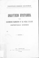Έκδοση του Υπουργείου Εθνικής Οικονομίας που περιλαμβάνει το αναλυτικό πρόγραμμα των μαθημάτων που διδάσκονταν στις μεσαίες τάξεις των εμπορικών σχολών.