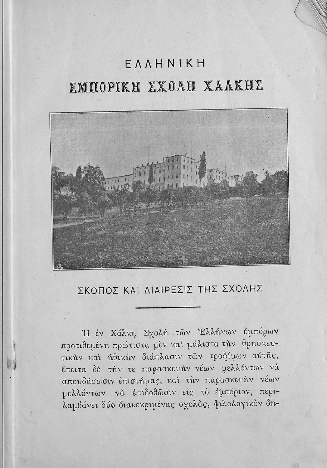 Έκδοση που περιέχει το αναλυτικό πρόγραμμα και τον εσωτερικό κανονισμό της Ελληνικής Εμπορικής Σχολής Χάλκης.