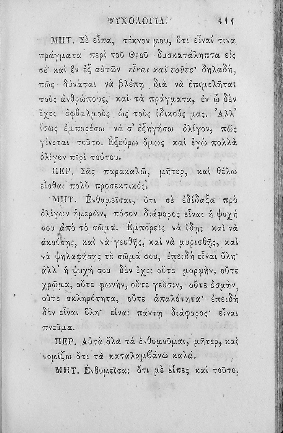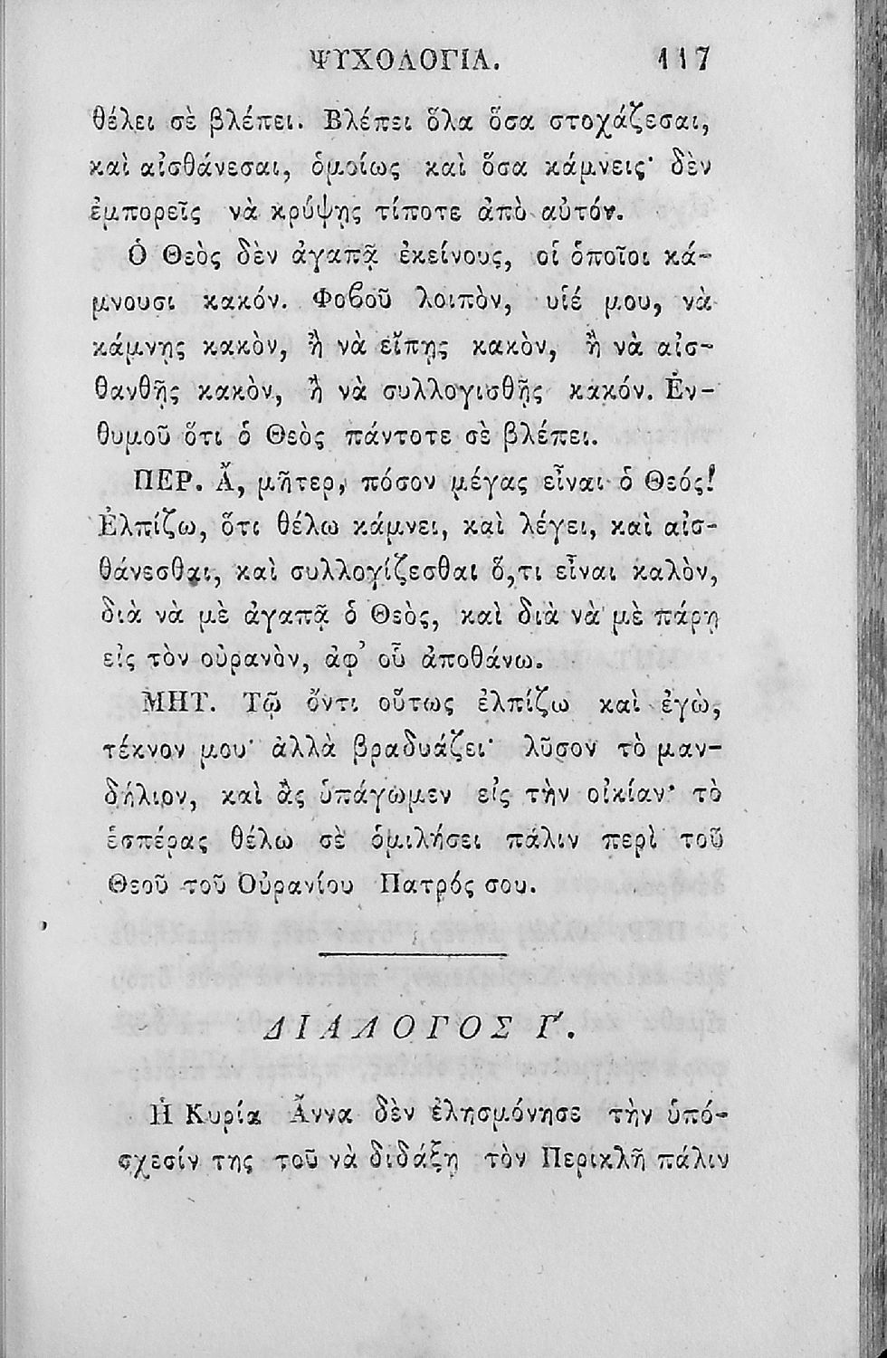 Τίτλος: Συλλογή ωφελίμων και ψυχαγωγών αναγνωσμάτων: Ψυχολογία προς διδασκαλίαν των παίδων (Γαλλωδέτος), Σύντομες παρατηρήσεις περί της ιστορίας, του κύρους και του σκοπού του Σαββάτου του, Ευλογία προς το ανθρώπινο γένος Η Κυριακή (Γούρνεϊ), Περί μετάνοιας (Γαλλωδέτος)
