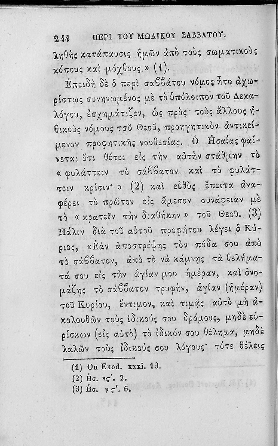Συλλογή ωφελίμων και ψυχαγωγών αναγνωσμάτων: Ψυχολογία προς διδασκαλίαν των παίδων (Γαλλωδέτος), Σύντομες παρατηρήσεις περί της ιστορίας, του κύρους και του σκοπού του Σαββάτου του, Ευλογία προς το ανθρώπινο γένος Η Κυριακή (Γούρνεϊ), Περί μετάνοιας (Γαλλωδέτος)
