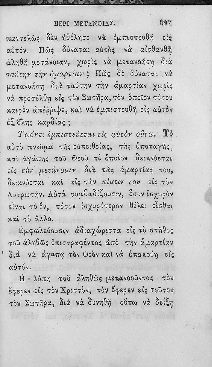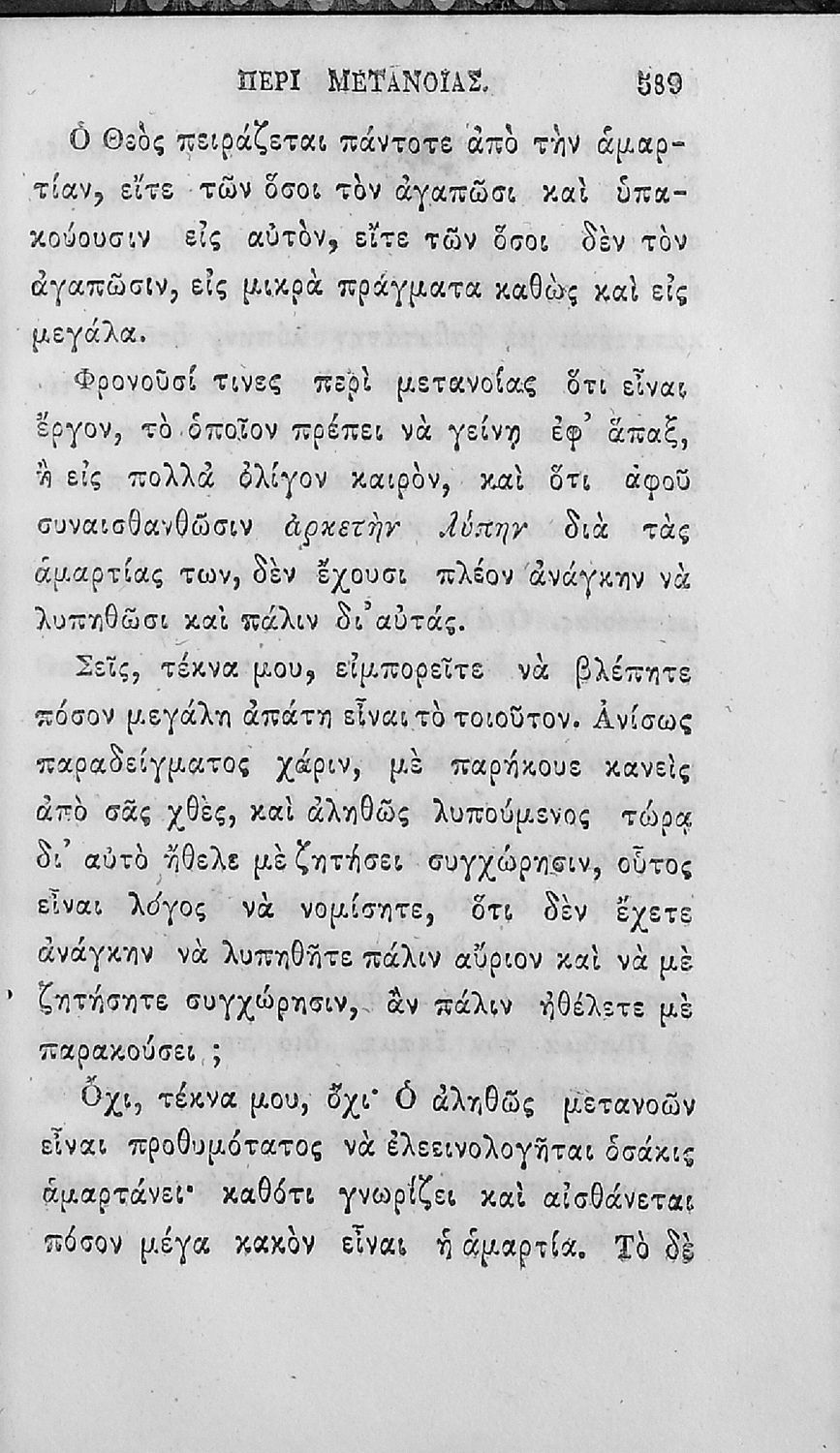 Συλλογή ωφελίμων και ψυχαγωγών αναγνωσμάτων: Ψυχολογία προς διδασκαλίαν των παίδων (Γαλλωδέτος), Σύντομες παρατηρήσεις περί της ιστορίας, του κύρους και του σκοπού του Σαββάτου του, Ευλογία προς το ανθρώπινο γένος Η Κυριακή (Γούρνεϊ), Περί μετάνοιας (Γαλλωδέτος)