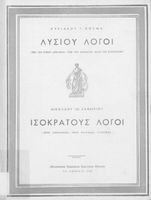 Σχολικό εγχειρίδιο Αρχαίων Ελληνικών που περιλαμβάνει τους Λόγους του Λυσία Περί του σηκού απολογία, Υπέρ του αδυνάτου, Κατά των σιτοπωλών και του Ισοκράτη Προς Δημόνικον, Προς Νικοκλέα και Ευαγόρας, εισαγωγή ...