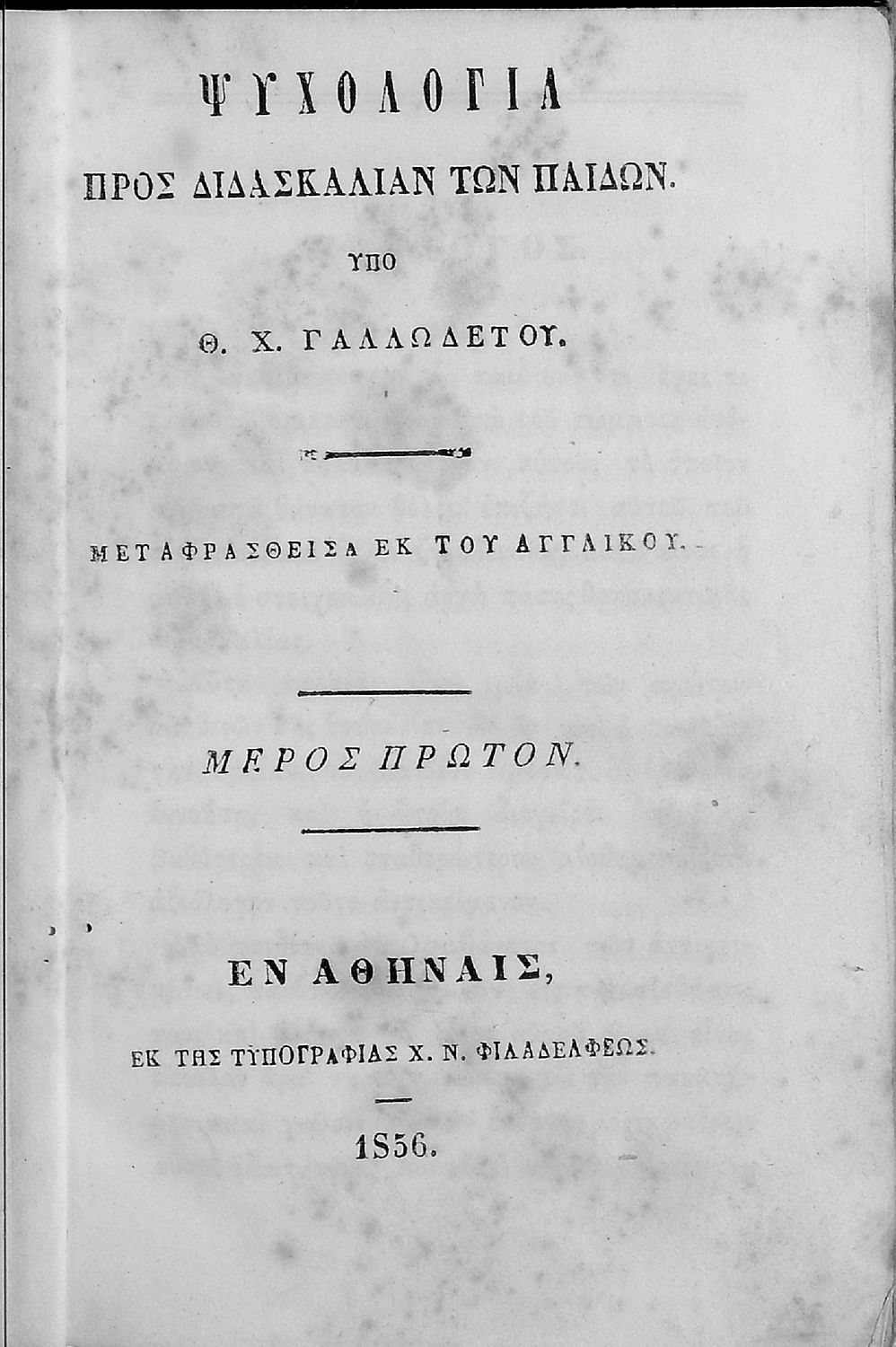 Συγγραφέας: Χ. Δ. Γαλλωδέτος (Thomas Hopkins Gallaudet), Ιωσήφ Ιωάννη Γούρνεϊ (Joseph John Gurney)
