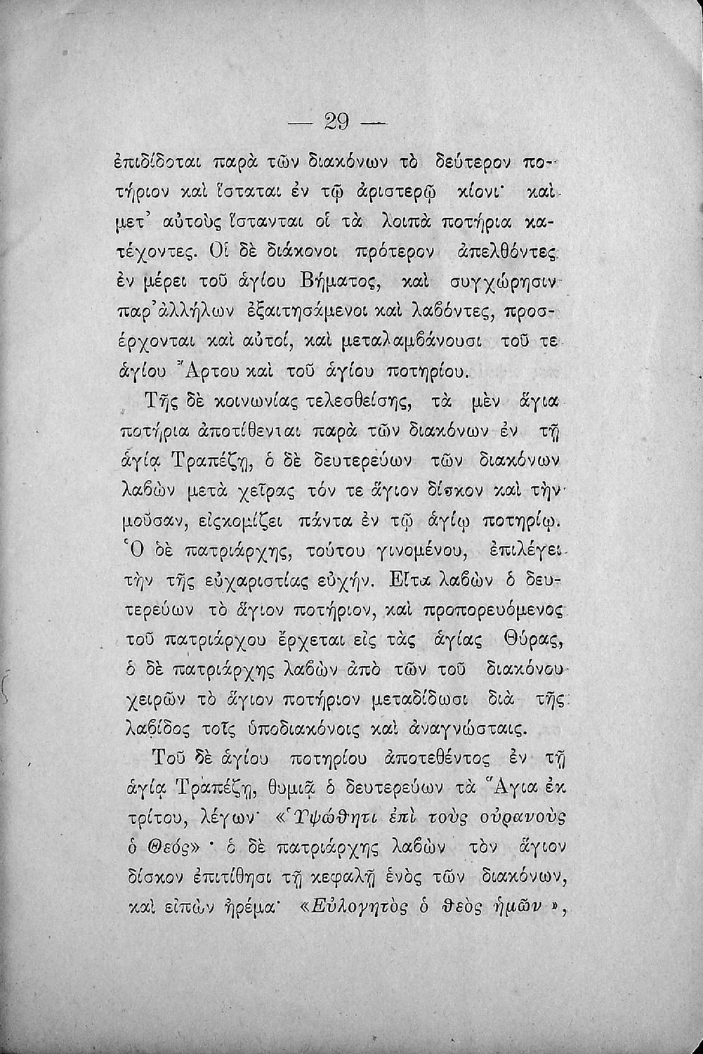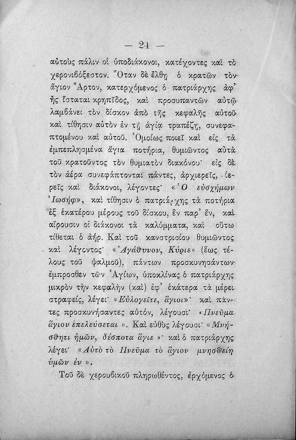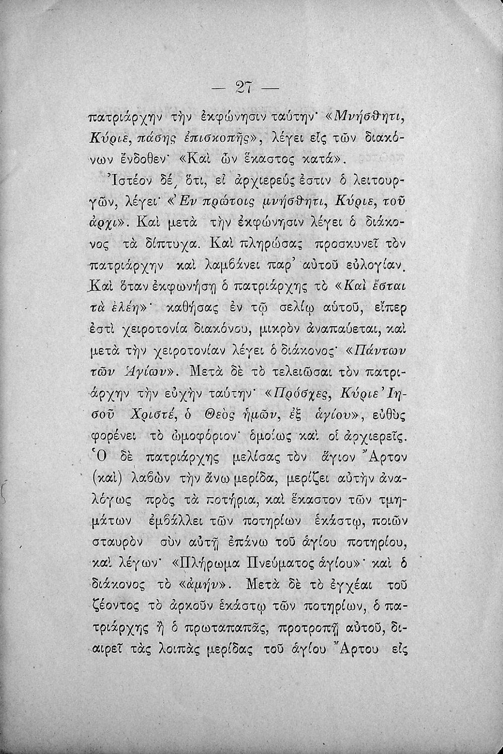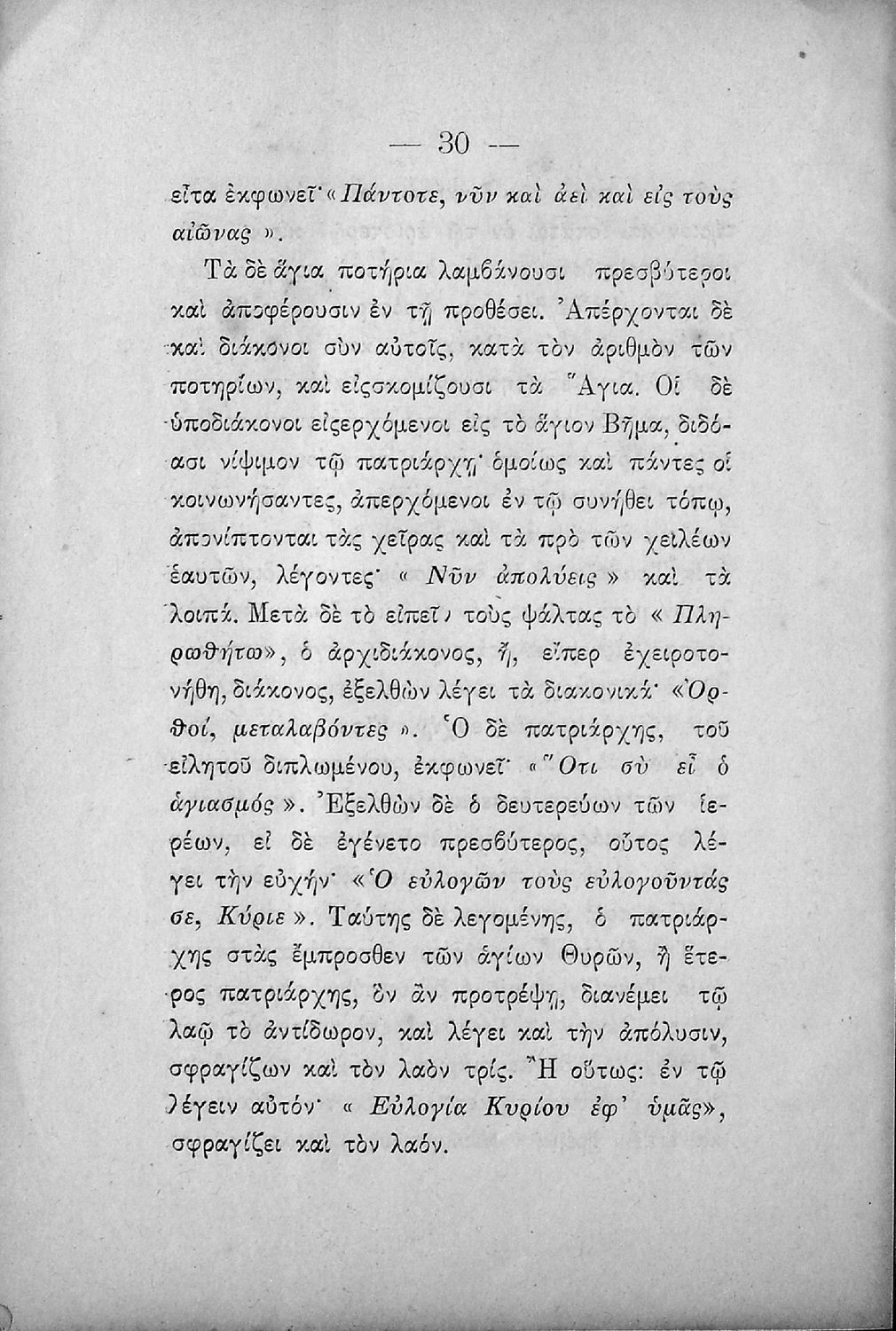 Έκδοση που περιγράφει την τέλεση της λειτουργίας από τον Οικουμενικό Πατριάρχη στην Μεγάλη Εκκλησία στην Κωνσταντινούπολη.