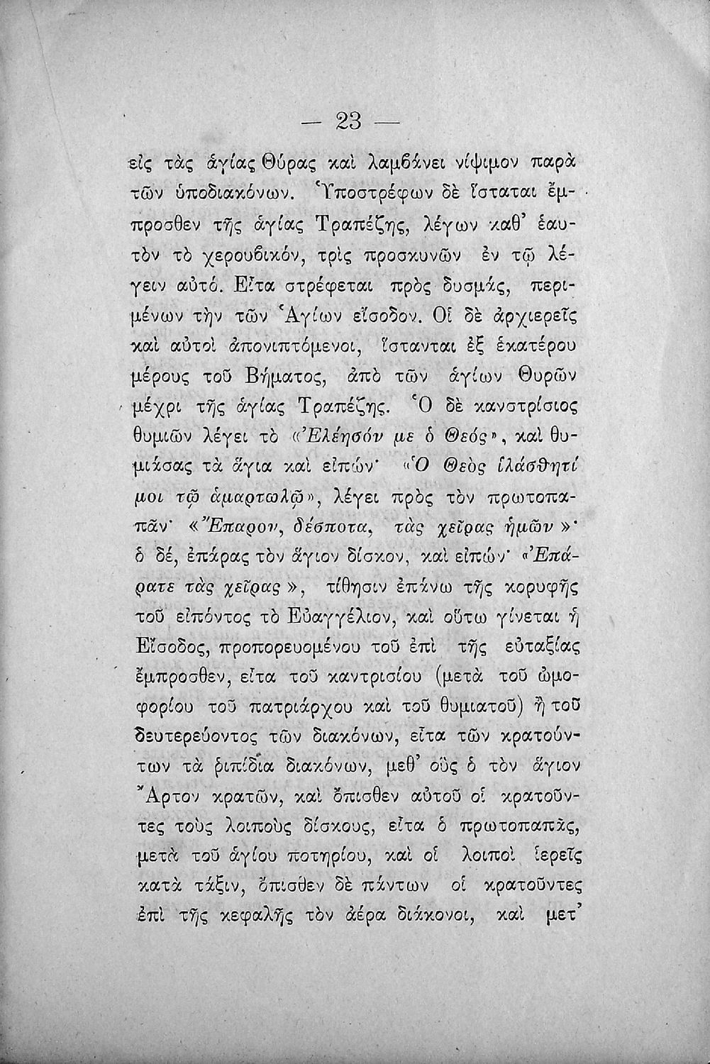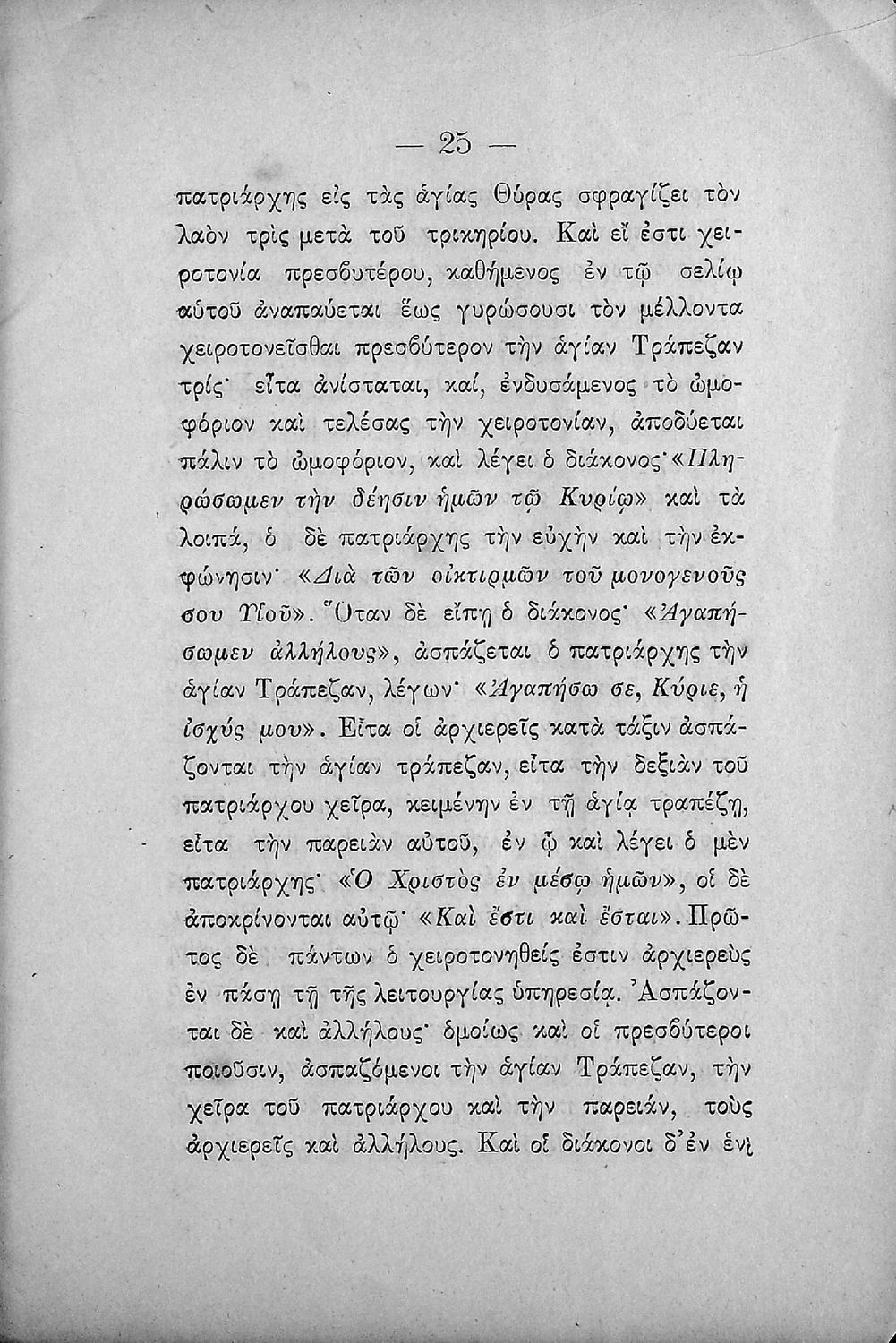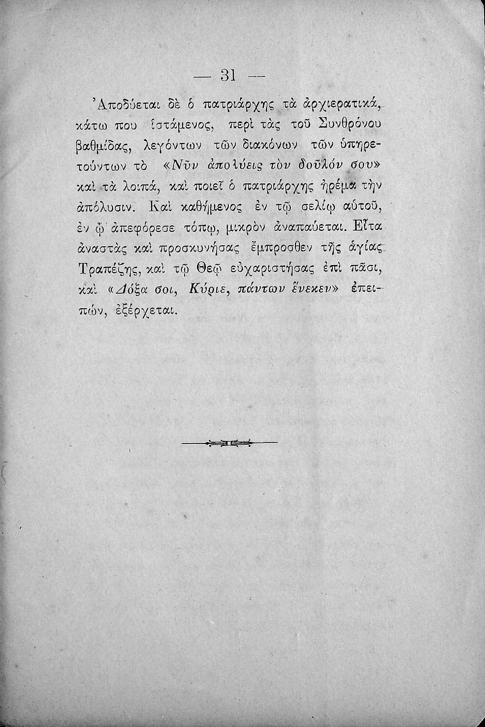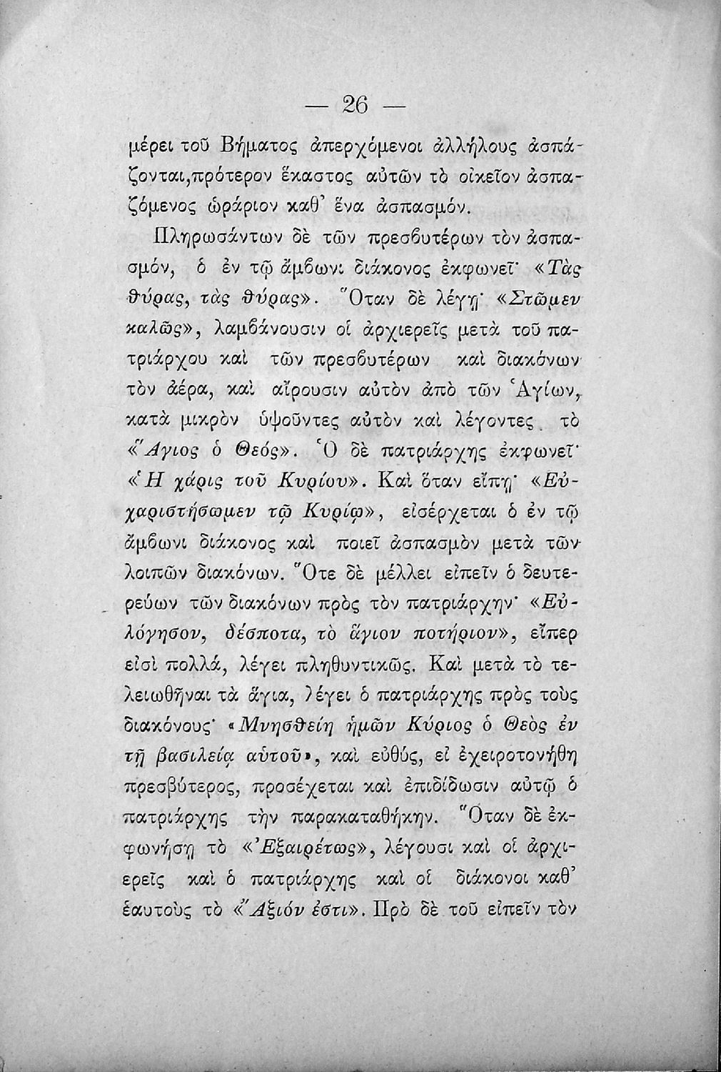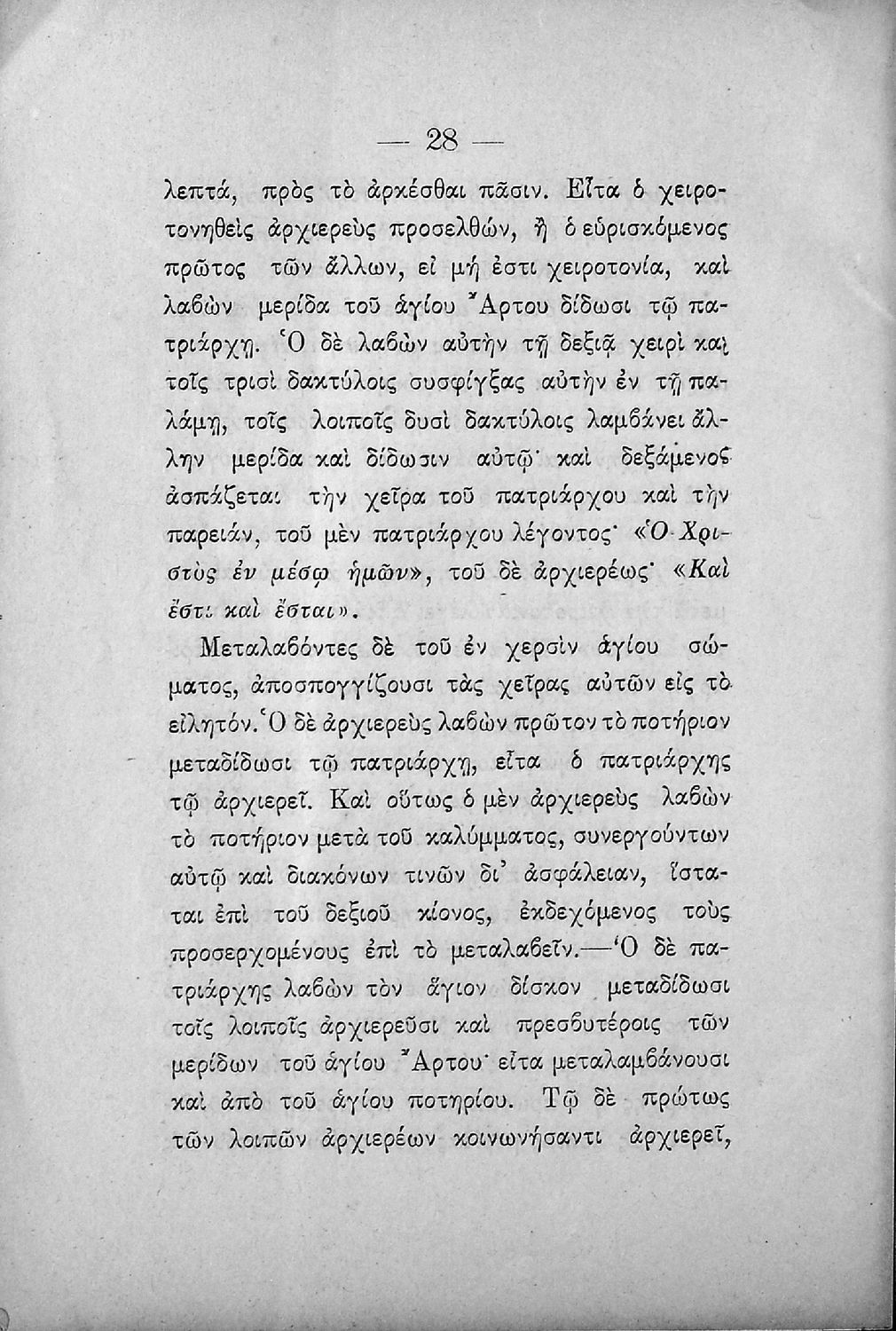 Έκδοση που περιγράφει την τέλεση της λειτουργίας από τον Οικουμενικό Πατριάρχη στην Μεγάλη Εκκλησία στην Κωνσταντινούπολη.