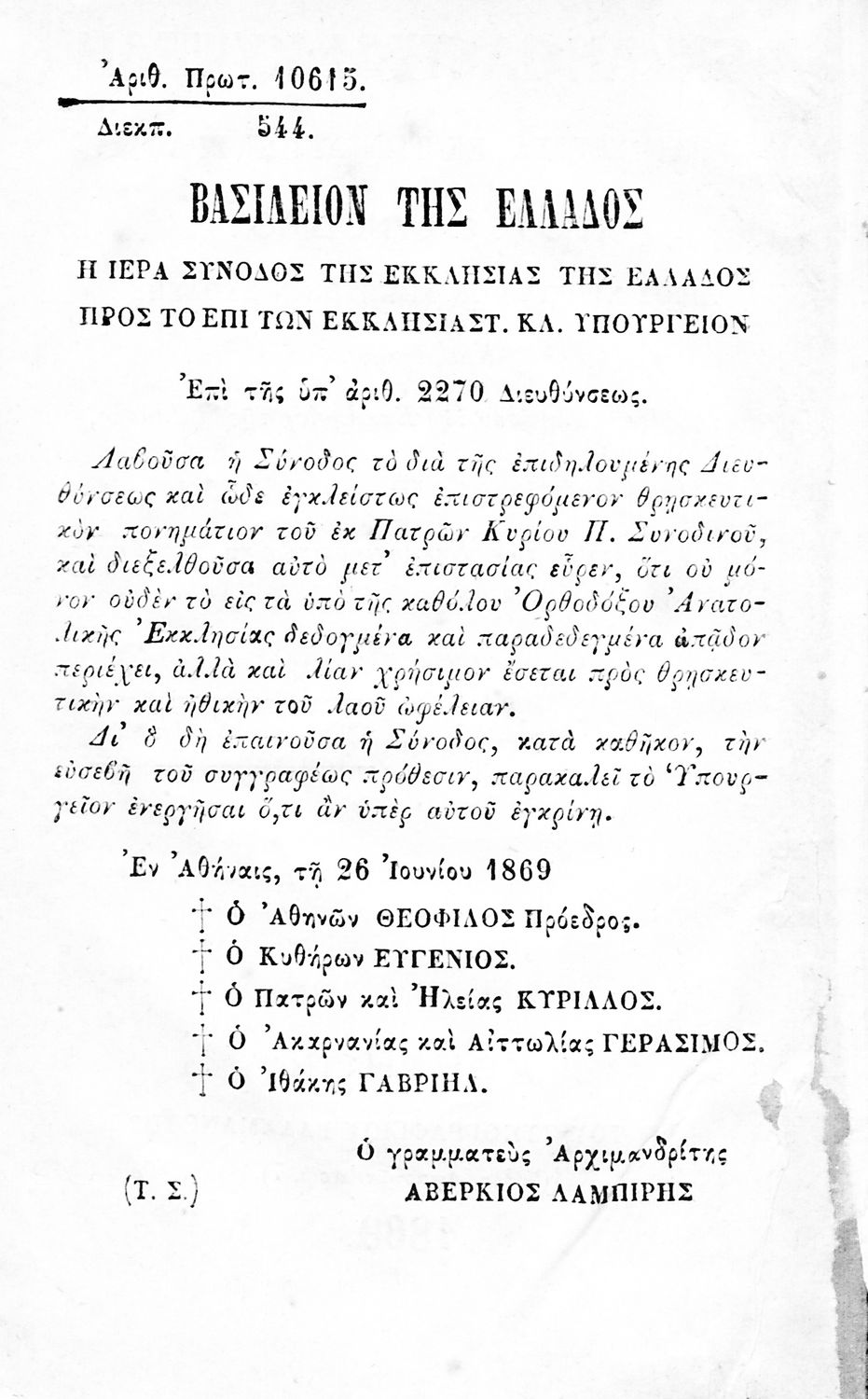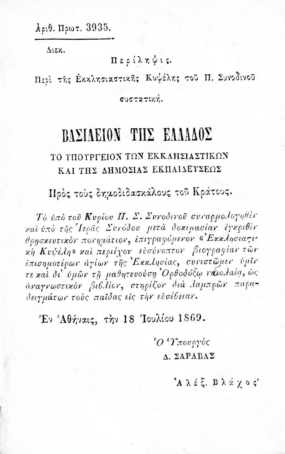 Υπουργική απόφαση / Σύμβαση: 3935/18-8-1869