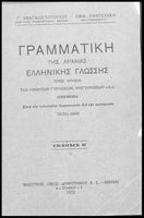 Σχολικό εγχειρίδιο Αρχαίων Ελληνικών Γυμνασίου που περιλαμβάνει τους κανόνες γραμματικής και είναι χωρισμένη στο φθογγολογικό, το τυπολογικό και ετυμολογικό μέρος. Περιέχει και κατάλογο ανωμάλων ρημάτων, ...