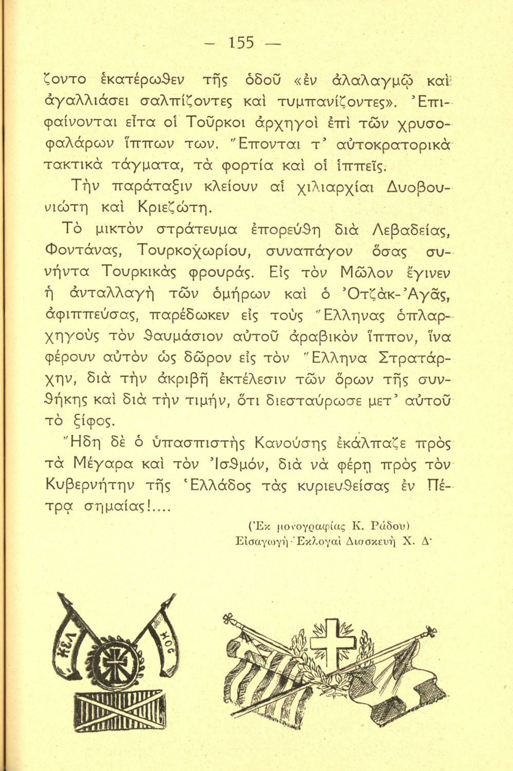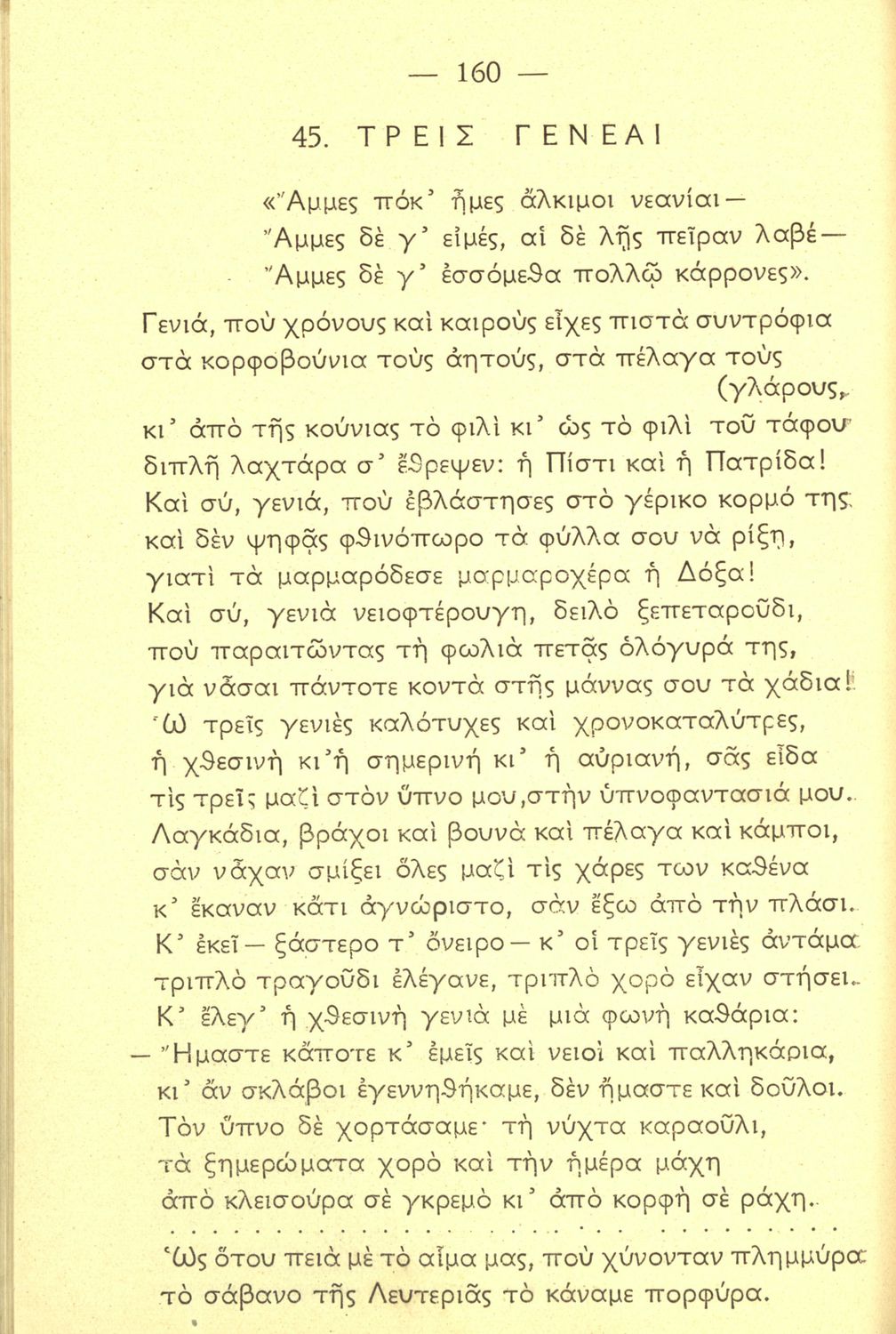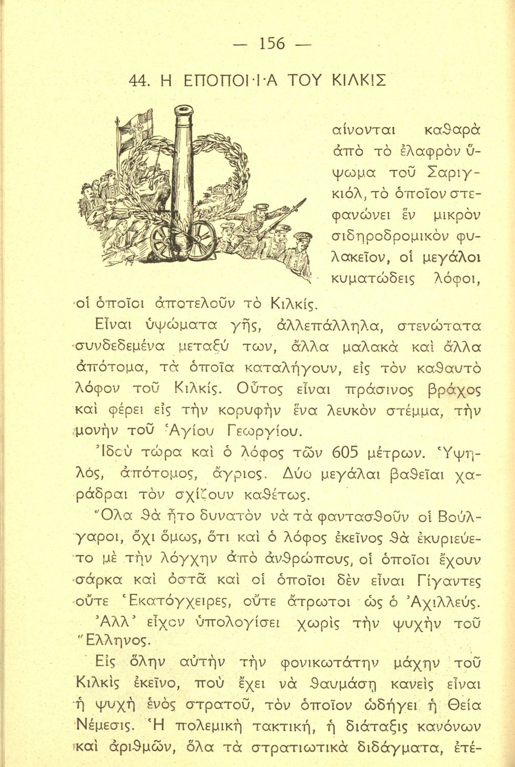 Βαθμίδα εκπαίδευσης: Πρωτοβάθμια Τάξη: ΣΤ' Δημοτικού Μάθημα: Νέα Ελληνικά Γλώσσα: Καθαρεύουσα Παρουσίαση περιεχομένου: Αναγνωστικό της ΣΤ΄ Δημοτικού που κυκλοφόρησε σε 7.000 αντίτυπα 25 ημέρες πριν την 4η Αυγούστου 1936, οπότε κατά την επόμενη σχολική χρονιά διδάχτηκε ελάχιστα και η έκδοσή του με αυτή την μορφή σταμάτησε. |