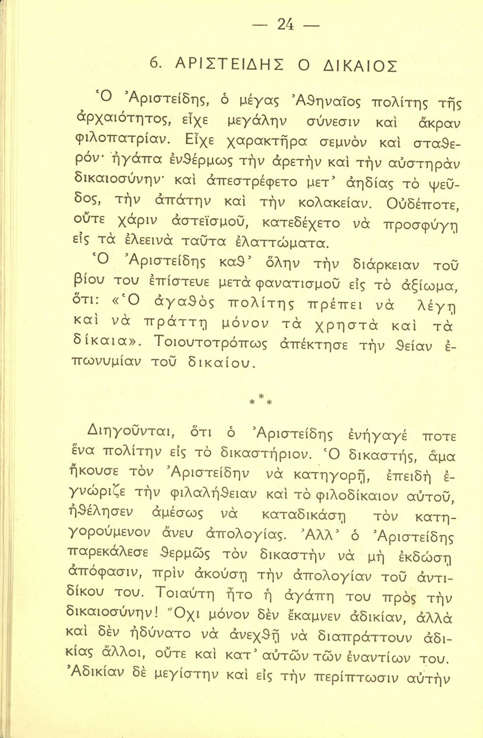 Αναγνωστικό ΣΤ΄ Δημοτικού που περιλαμβάνει πεζά και ποιήματα από την ελληνική μυθολογία, την ιστορική παράδοση, τις ηθικές αρετές και αξίες, και τη θρησκευτική παράδοση.