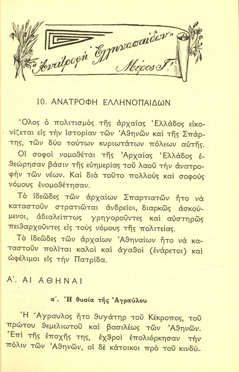 Αναγνωστικό της ΣΤ΄ Δημοτικού που κυκλοφόρησε σε 7.000 αντίτυπα 25 ημέρες πριν την 4η Αυγούστου 1936, οπότε κατά την επόμενη σχολική χρονιά διδάχτηκε ελάχιστα και η έκδοσή του με αυτή την μορφή σταμάτησε.
