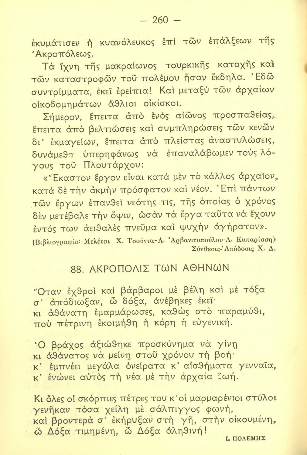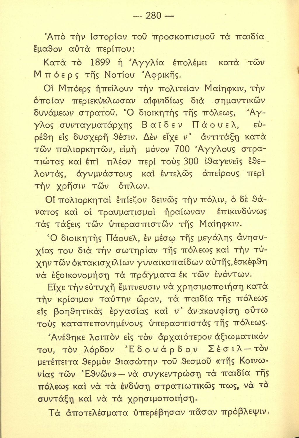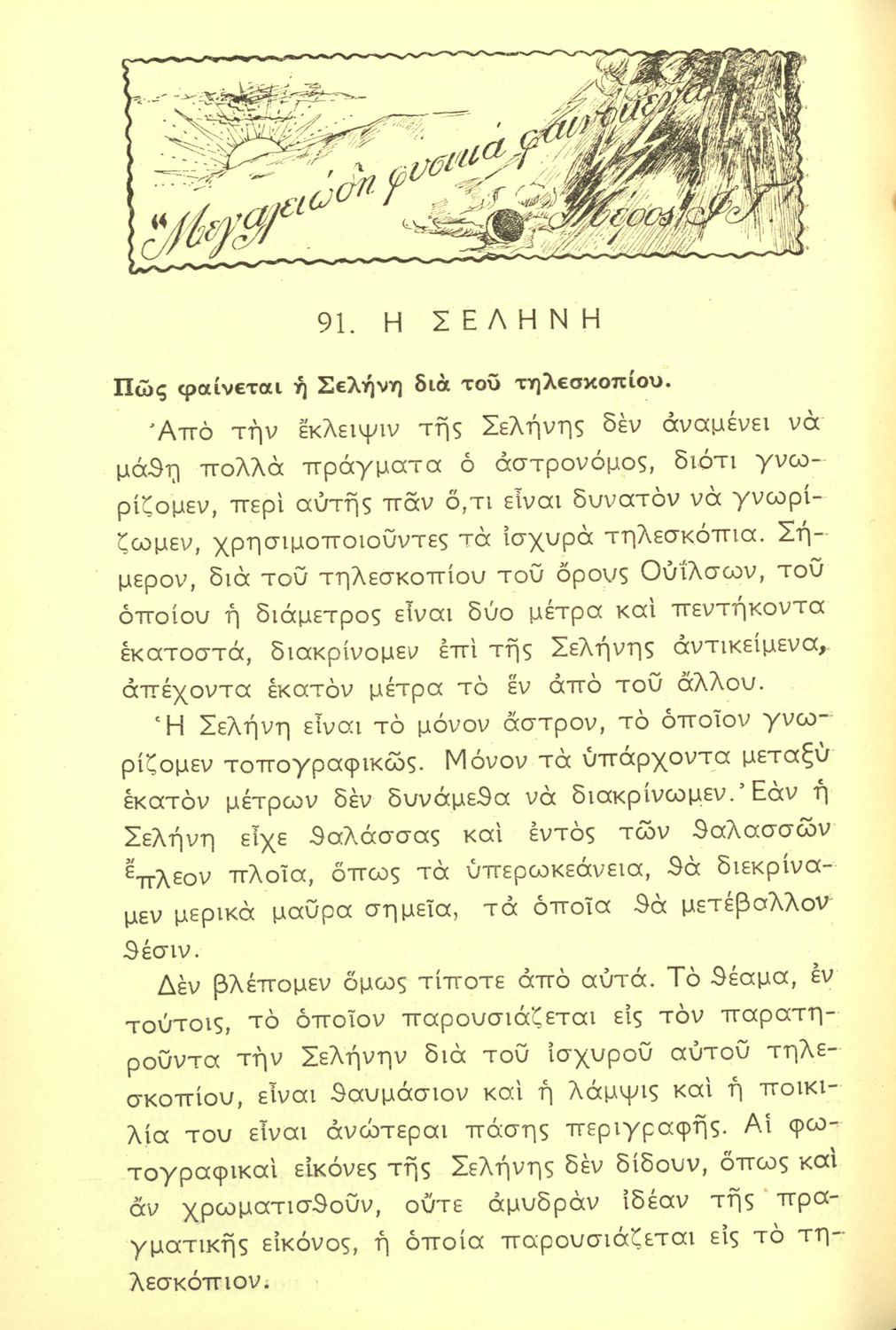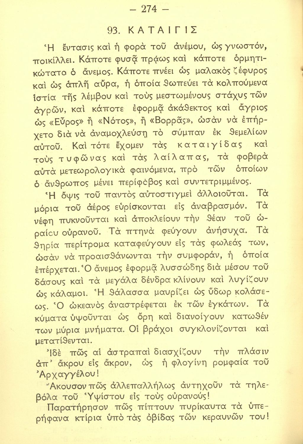 Βαθμίδα εκπαίδευσης: Πρωτοβάθμια Τάξη: ΣΤ' Δημοτικού Μάθημα: Νέα Ελληνικά Γλώσσα: Καθαρεύουσα Παρουσίαση περιεχομένου: Αναγνωστικό της ΣΤ΄ Δημοτικού που κυκλοφόρησε σε 7.000 αντίτυπα 25 ημέρες πριν την 4η Αυγούστου 1936, οπότε κατά την επόμενη σχολική χρονιά διδάχτηκε ελάχιστα και η έκδοσή του με αυτή την μορφή σταμάτησε. |