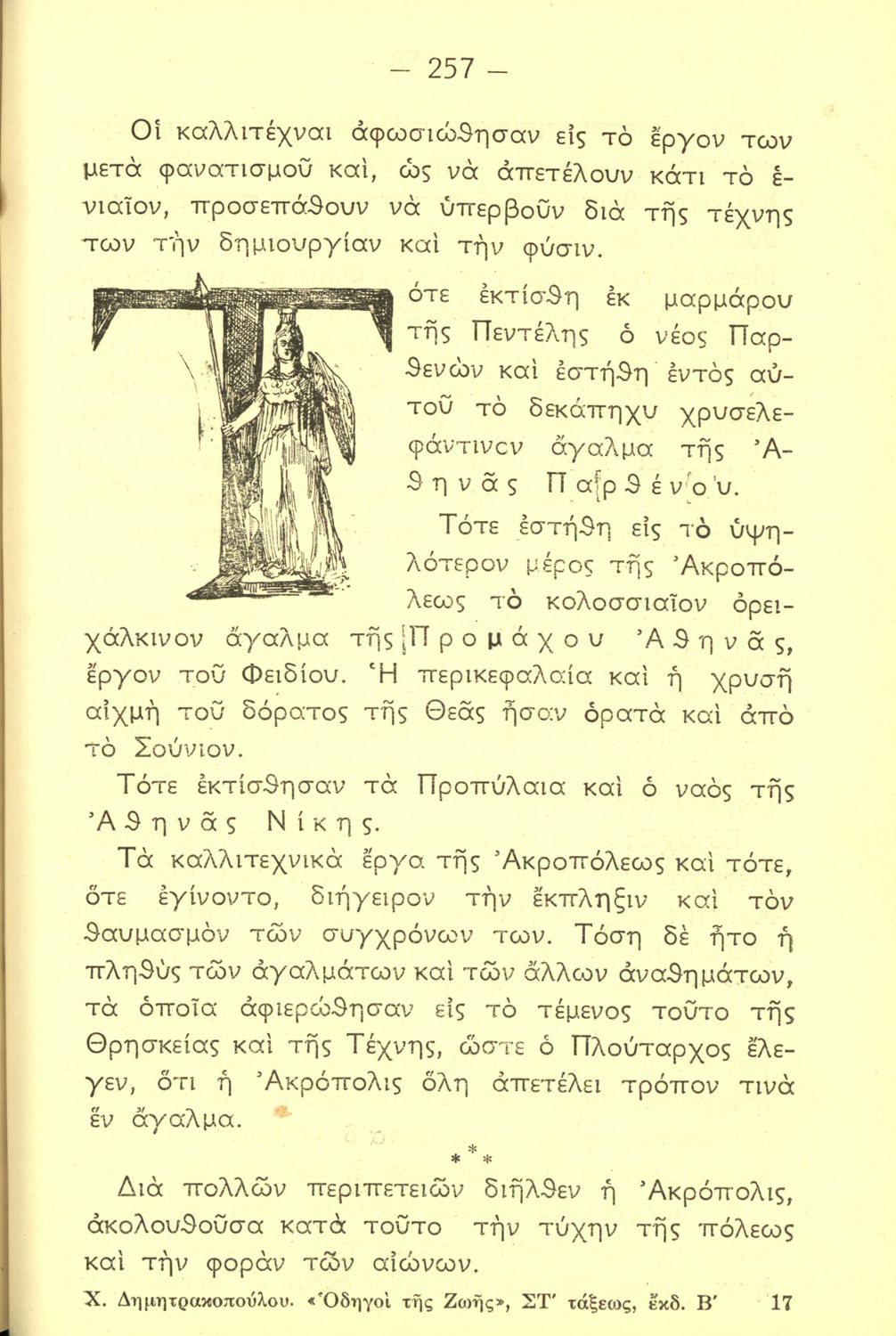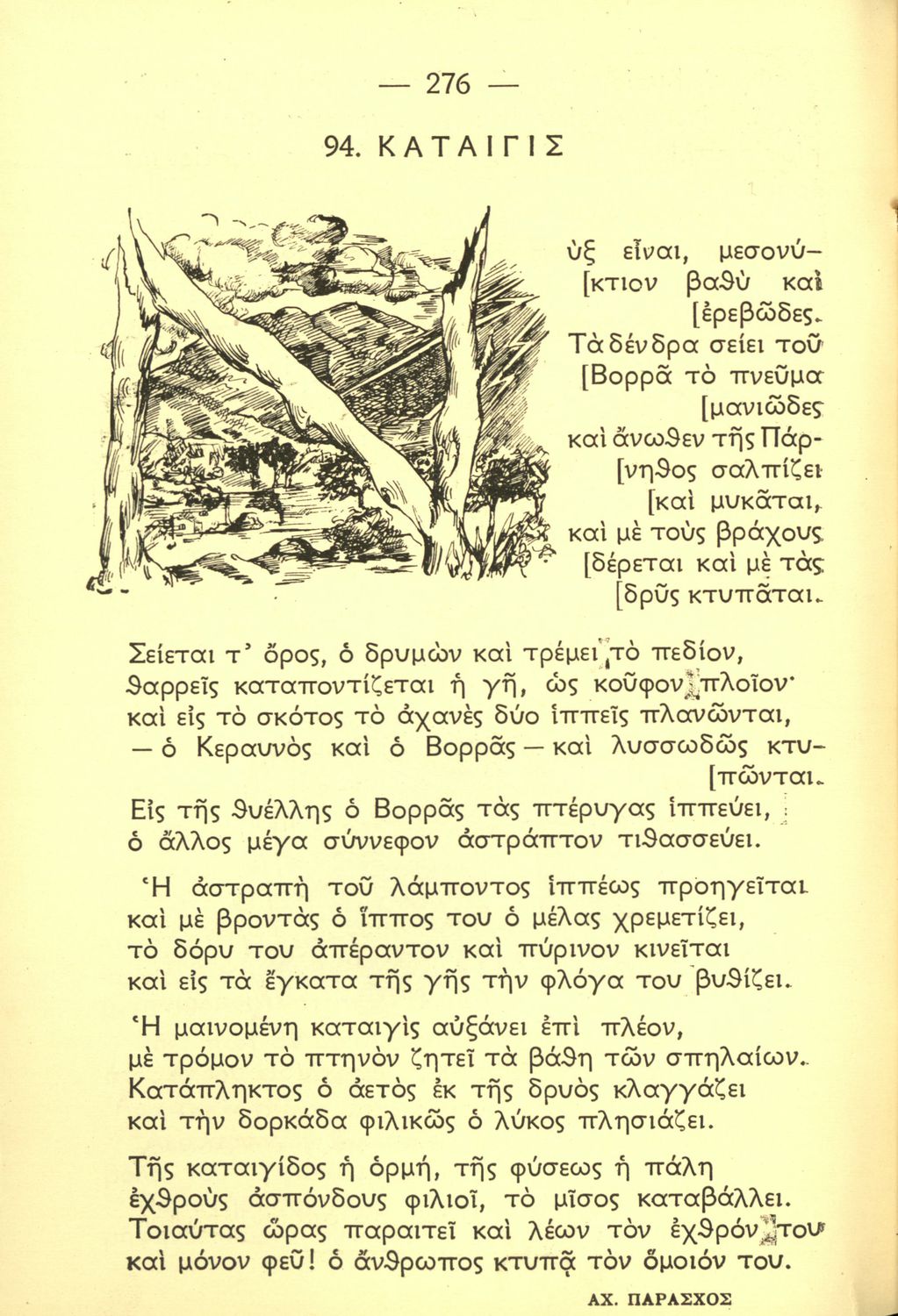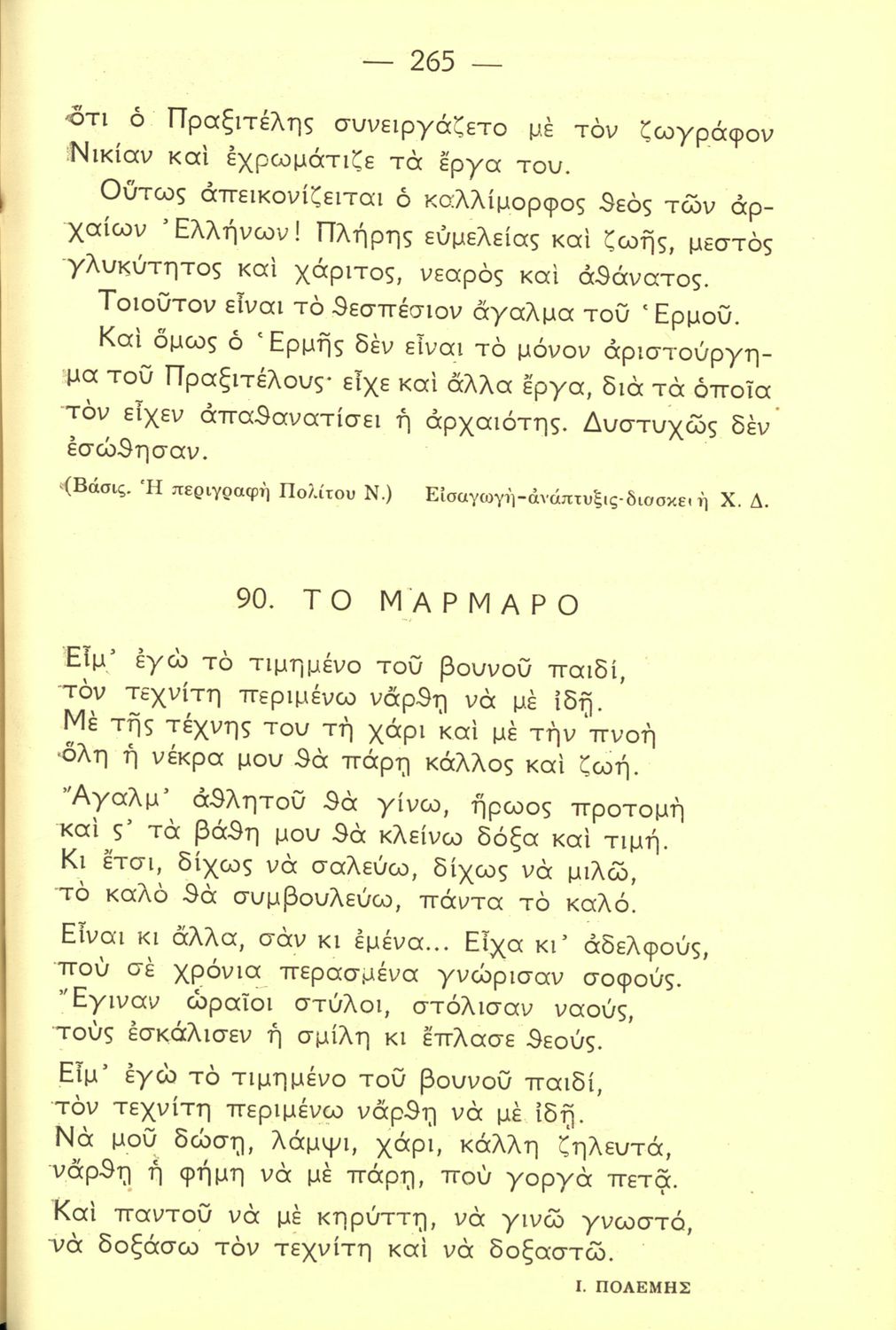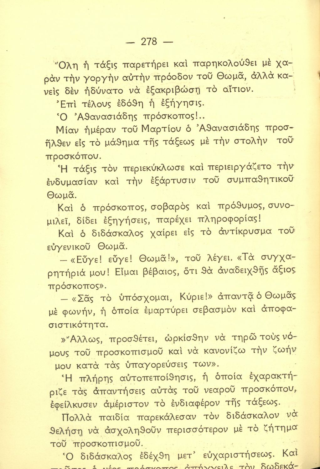 Βαθμίδα εκπαίδευσης: Πρωτοβάθμια Τάξη: ΣΤ' Δημοτικού Μάθημα: Νέα Ελληνικά Γλώσσα: Καθαρεύουσα Παρουσίαση περιεχομένου: Αναγνωστικό της ΣΤ΄ Δημοτικού που κυκλοφόρησε σε 7.000 αντίτυπα 25 ημέρες πριν την 4η Αυγούστου 1936, οπότε κατά την επόμενη σχολική χρονιά διδάχτηκε ελάχιστα και η έκδοσή του με αυτή την μορφή σταμάτησε. |