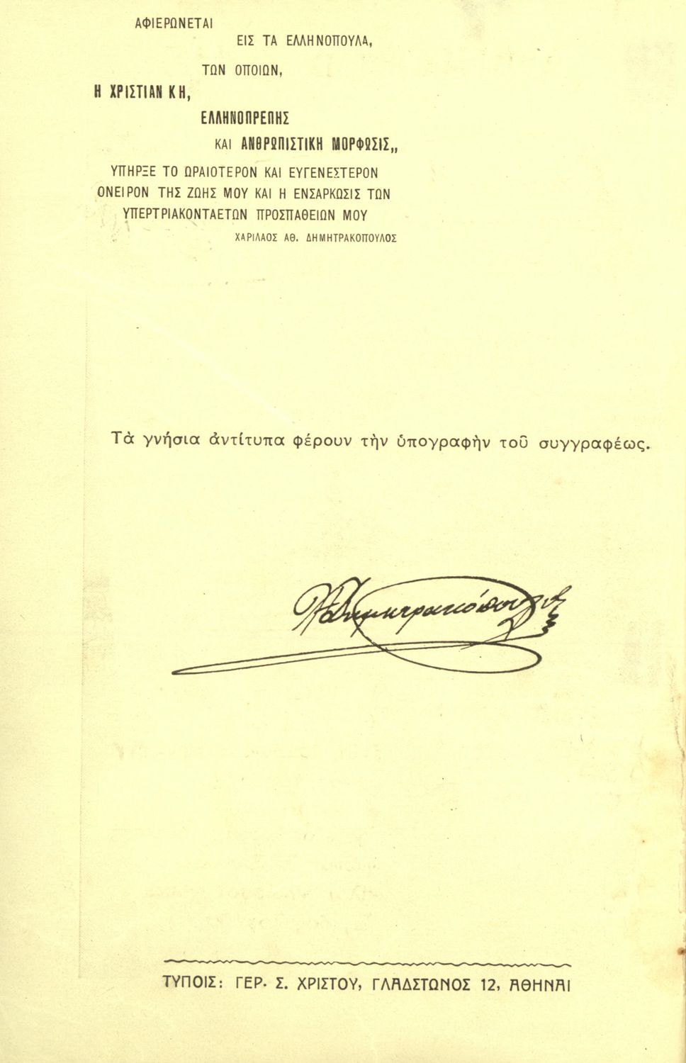 Αναγνωστικό της ΣΤ΄ Δημοτικού που κυκλοφόρησε σε 7.000 αντίτυπα 25 ημέρες πριν την 4η Αυγούστου 1936, οπότε κατά την επόμενη σχολική χρονιά διδάχτηκε ελάχιστα και η έκδοσή του με αυτή την μορφή σταμάτησε.