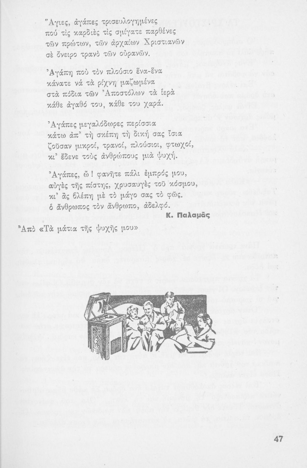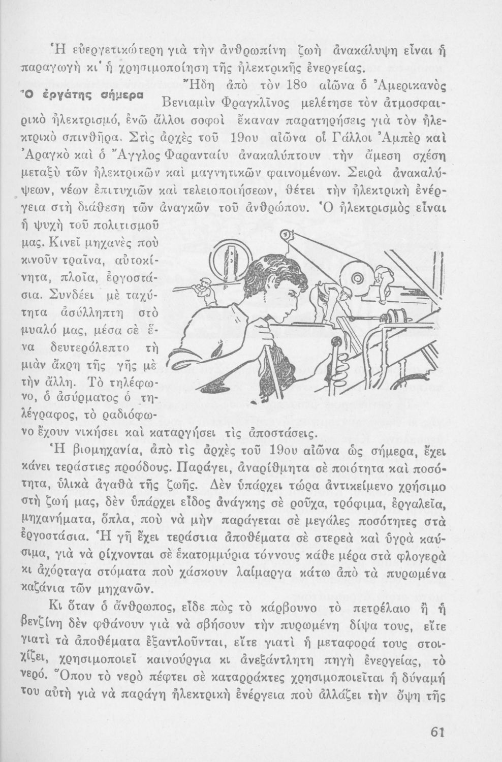 Σχολικό εγχειρίδιο Νέων Ελληνικών για τις επαγγελματικές σχολές που περιλαμβάνει ποιήματα και πεζά με θεματολογία από την ιστορική, κοινωνική και επαγγελματική ζωή και κείμενα με πατριωτικό ύφος.